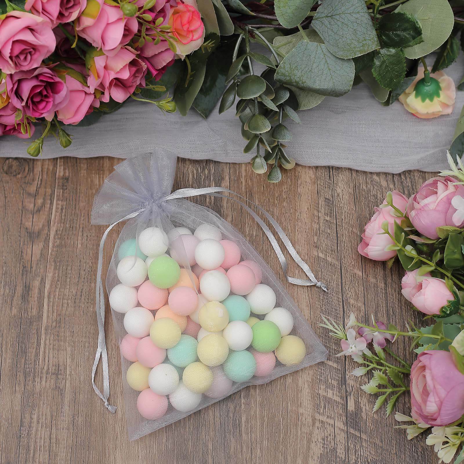 10 Pack 5"x7" Silver Organza Drawstring Wedding Party Favor Gift Bags