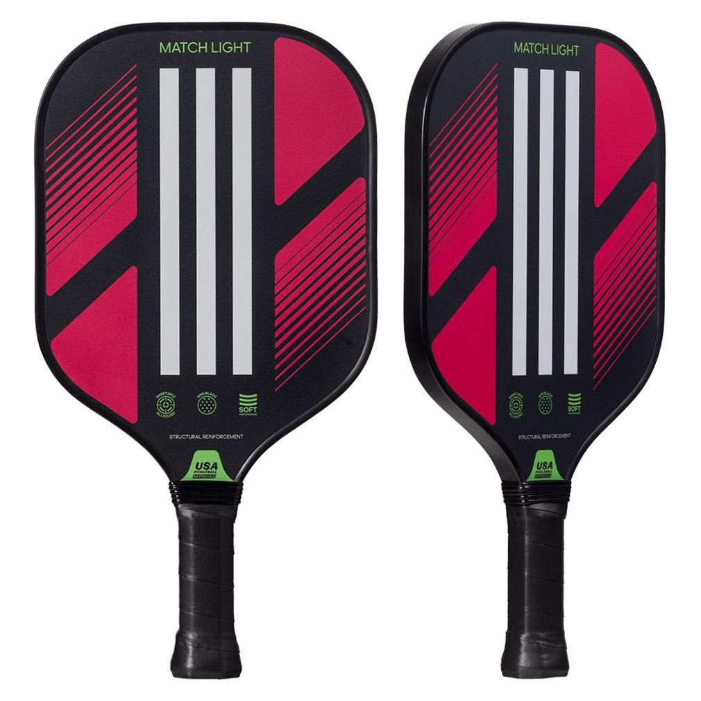 Jumpstart your game with the new and improved adidas Match Light 2 Pickleball Paddle. Its fiberglass hitting surface is treated with Spin Blade Grit technology, adding texture for more spin to disrupt your opponent's game. A 14mm thick low-density polypropylene honeycomb core provides power and control on slow-to-moderate swing speeds, which with its light weight makes this paddle perfect for beginners to intermediate players. The paddle construction enables a large and consistent sweet spot, plus a carbon-reinforced perimeter and extra durable edge guard create a solid overall design. Adidas pickleball paddle grips use a PU perforated outer layer for a secure, non-slip finish and an EVA inner layer for a soft, cushioned feel.