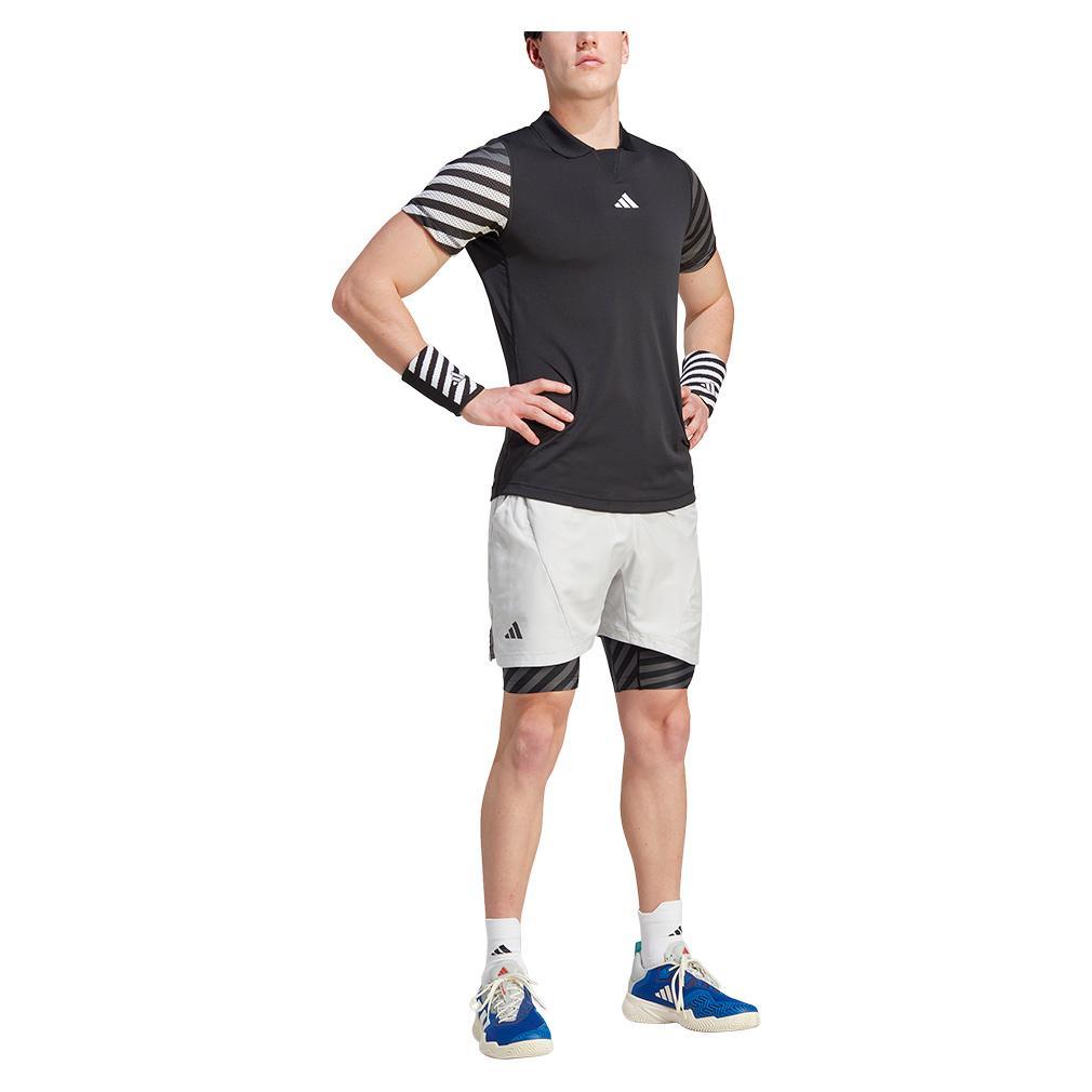 Get into the game in our adidas Men's 2in1 Pro Tennis Shorts, the perfect combination of comfort, style, and functionality. These shorts are designed to provide an optimal fit and support for your game. Featuring a comfortable elastic waistband with an external drawstring, these shorts offer an adjustable fit, ensuring maximum comfort during your matches. These 2in1 shorts feature an outer and inner short combo, providing a supportive design.