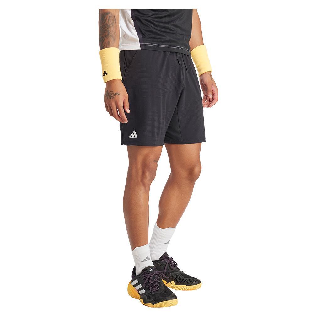Keep yourself feeling great and without limits in the adidas Men's Ergo 9 Inch Tennis Short. Thanks to the stretch woven fabric, this short is very lightweight and flexible for easy freedom of movement. The German brand incorporates AeroReady technology to help your body stay cool, dry, and confident for even better on-court performance. The elastic waistband with drawcord gives you an adjustable fitting each time, while side ball pockets give you plenty of storage. A regular fitting and 9-inch inseam gives you great coverage as you move around the court.