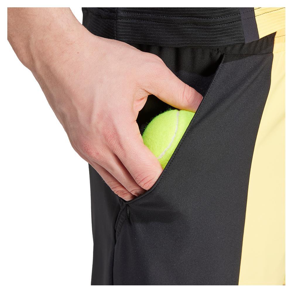 It's go time with the adidas Men's Heat.RDY ERGO Pro 7 Inch Tennis Short. These athletic shorts are made with woven ripstop fabric sustainably produced from Parley Ocean Plastic material that recycles waste. Classic cut lines and split details at the hem improve the ergonomic construction to grant more freedom of movement for great on-court performance. Sweat-wicking technologies further enhance your experience with cooling relief that keeps you in the action.
