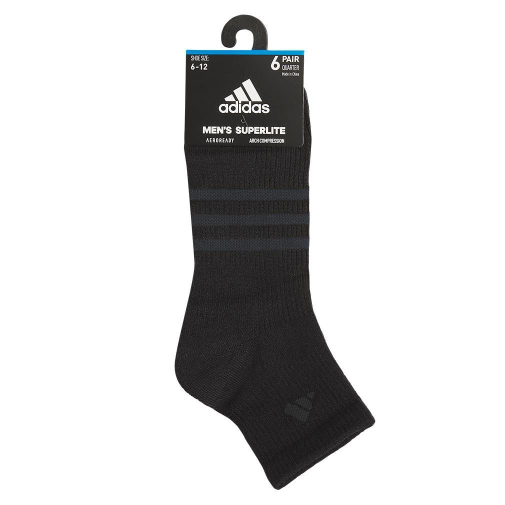 Stay light on your feet with the adidas Men's Superlite 3.0 6 Pack Quarter Tennis Socks. They're made with durable lightweight yarns that offer a close fit. Arch compression bands secure the feet for extra support. Moisture-wicking yarns help feet stay cool adn dry so you can go the distance.