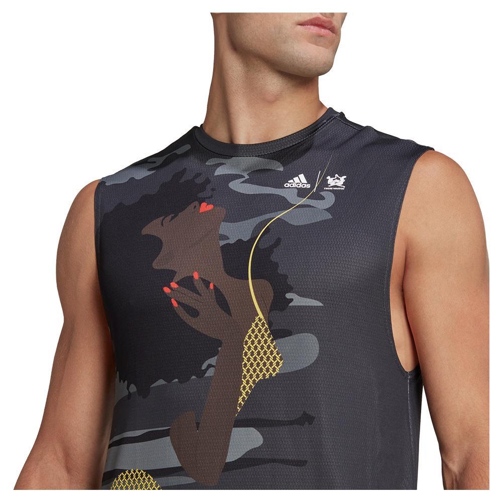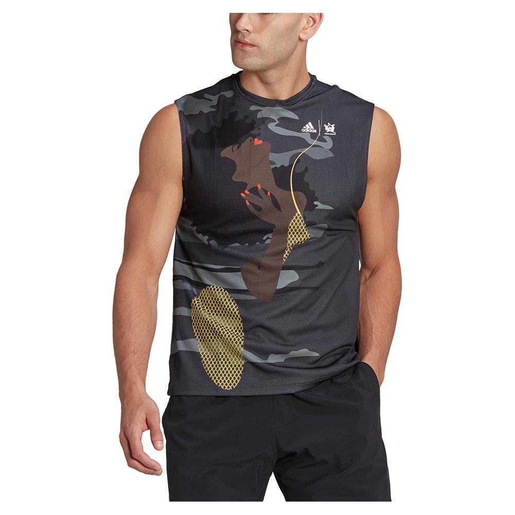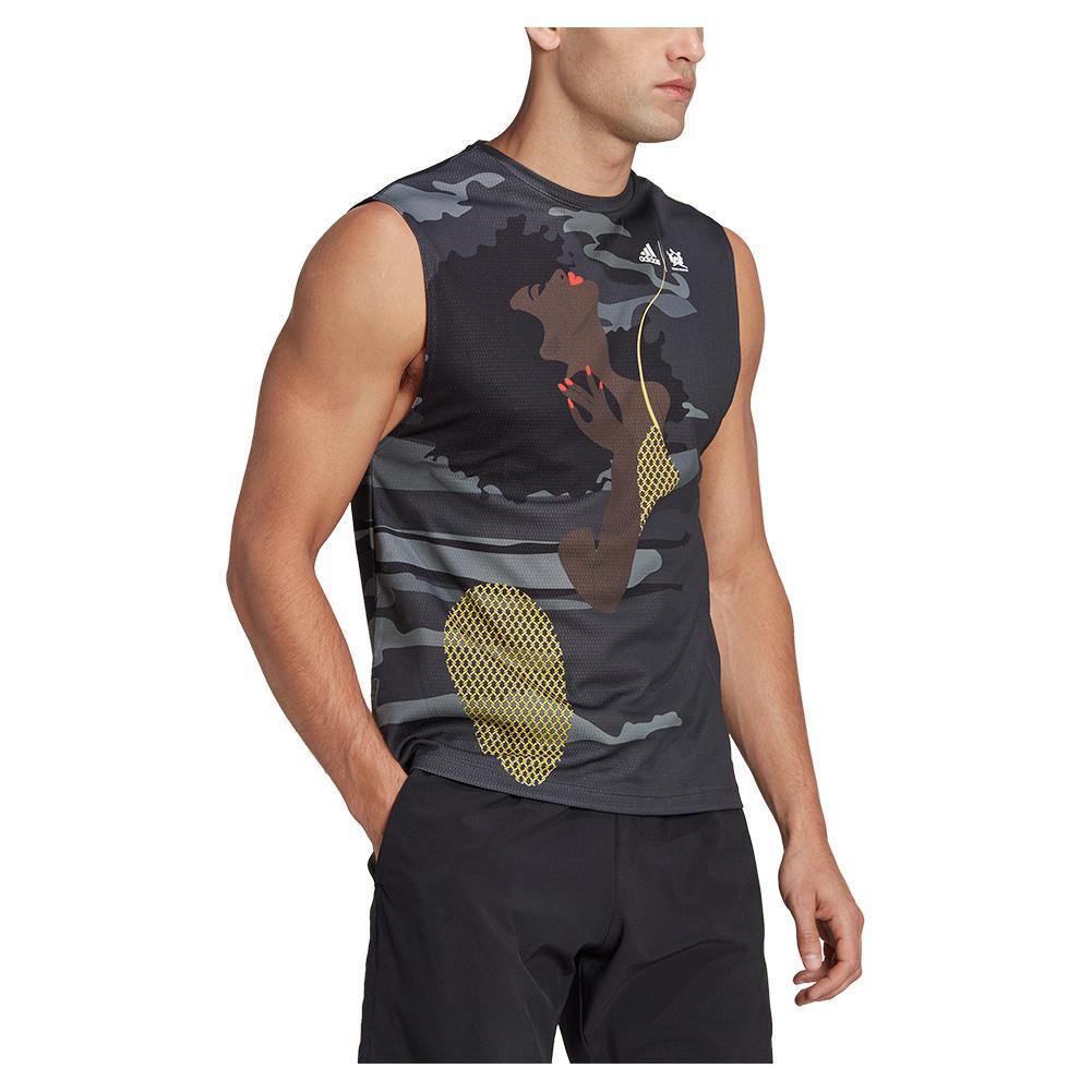 Dare to play your best in the Adidas Unisex New York Unitefit Sleeveless Tennis Top in Carbon! This sleeveless tennis top unites nature with sports. It is made with 100% Recycled Polyester and has breathtaking graphics across the front, side, and back. It also has a high rounded neck, generous armholes, and a straight hemline. Match it with other high-performance apparel from Adidas and challenge yourself today!