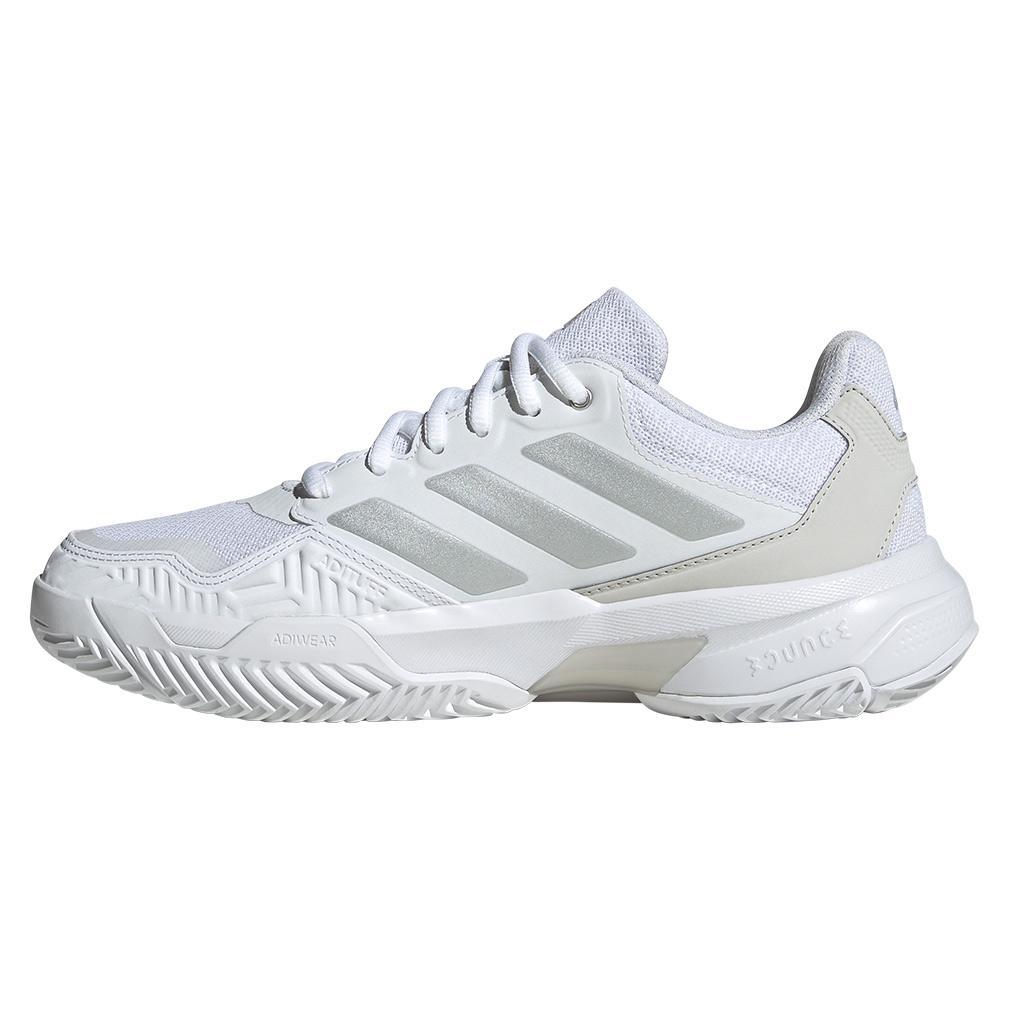 Women's CourtJam Control 3 Tennis Shoes White and Silver Metallic