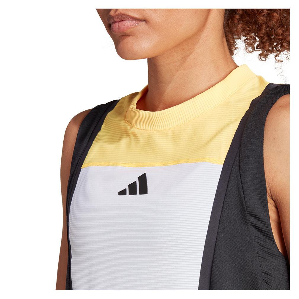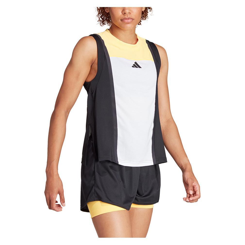 Prepare for your matches with confidence in our adidas Women's Heat.RDY Match Pro Tennis Tank, engineered to keep you energized and focused from start to finish. With HEAT.RDY technology and side slits at the hem maximizing airflow, you'll stay cool and composed during intense rallies. Vibrant orange accents ignite your competitive drive, while the lightweight construction allows you to move swiftly to chase down drop shots. This product is crafted with a yarn blend consisting of 50% recycled polyester and 50% Parley Ocean Plastic, intercepted from remote islands, beaches, and shorelines to prevent ocean pollution. With 70% recycled content overall, this tank top reflects adidas' commitment to sustainability and reducing environmental impact.