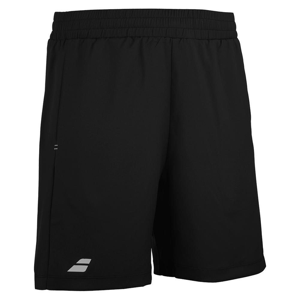 Take on the next challenge in the Babolat Mens Play Tennis Short. These solid-colored shorts feature a contrasting brand logo on the right hem for a simple and classic athletic style. An elastic waistband stretches to ensure a comfortable fit while the side pockets provide space for small items and extra tennis balls. 360 Motion gives players the flexibility to move swiftly across the court as Fiber Dry technology wicks sweat away from the skin for cooling relief.