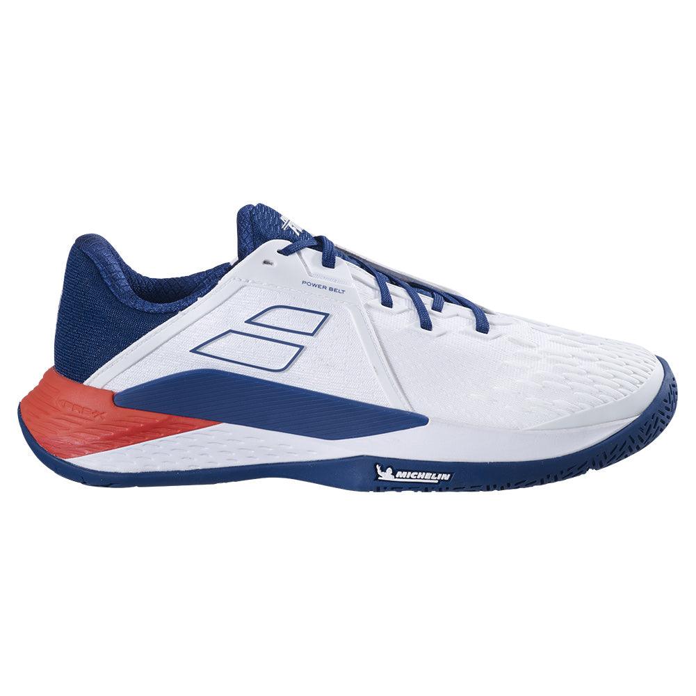 Babolat Men's Propulse Fury 3 Tennis Shoes gets a redesign and it continues to be the brand's ultimate dynamic support shoe. As with the previous model, the PowerBelt Strap wraps around the midfoot and offers exceptional lateral support with a snug fit. Between the midsole and the Powerbelt, a reinforcement piece increases lateral support and anchors you to the ground for added strength and stability. To address comfort, The heel is protected with a highly flexible EVA foam that absorbs shock. The entire heel zone is protected by EVA foam with less hardness to absorb shocks in any position on the court. A Propulse model would not be complete without the Michelin Premium rubber outsole. The most durable formulation developed for tennis shoes offers increased resistance grip to meet the extreme demands of tennis footwork.