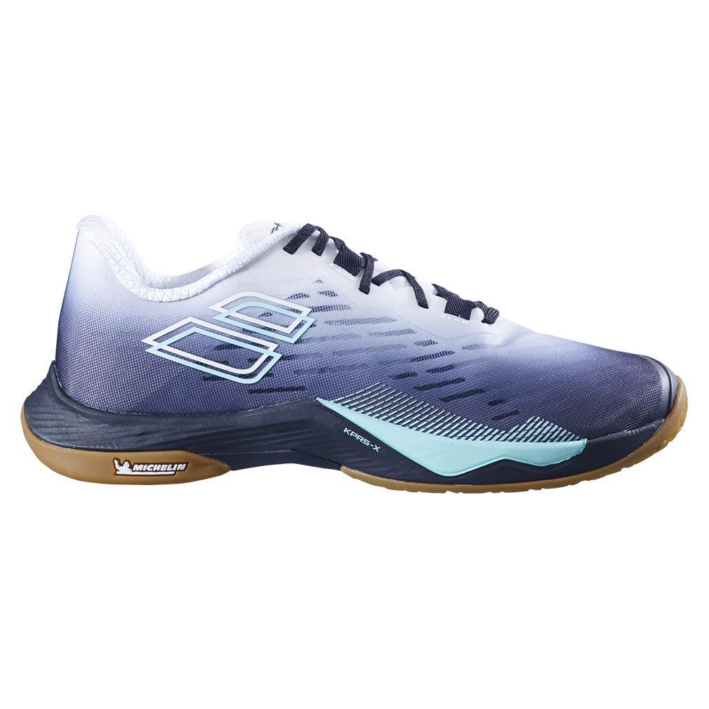 The Babolat Men's Shadow Tour Indoor Shoes feature a grippy Michelin gum outsole which is ideal for slick indoor surfaces for thebest combination of grip and durability. The shoes' heel section is protected by a bi-density sole for shock absorption and rebound. The upper construction molds to the foot€™s shape to help keep a locked down fit for quicker reactions and stability. A soft tongue and high ankle collar support the foot while maintaining a high level of comfort.