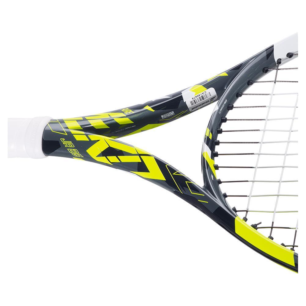 The Babolat Pure Aero Junior 26 2023 Prestrung Tennis Racquet brings the Pure Aero technology to a shorter racquet length for junior players. Tons of tennis players have fallen in love with the Aeromodular beam over the years. The design integrates the bumper and grommets together with an aerodynamic beam for more racquet head speed and spin. The racquet includes an open 16x19 FSI (Frame String Interaction) for easier access to spin. For the 2023, Babolat added NF2 -Tech which adds flax inserts at strategic locations for shock absorption, but without a loss of feel to enhance the playing experience. The idea is to provide dampening without overly muting the ball at contact. The Aero Junior 26 keeps SWX Pure Feel from the previous model, which further enhances vibration dampening by integrating Smac material within the graphite. This racquet is perfect for juniors competing on a full size court with green or yellow balls.