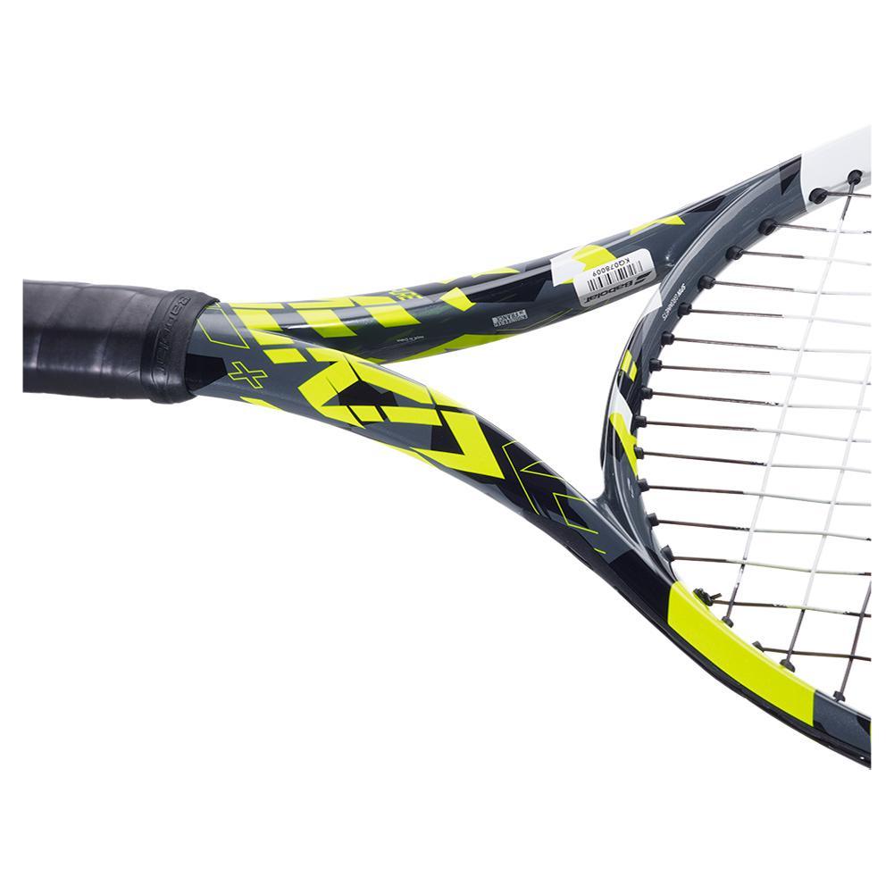 The Babolat Pure Aero Plus 2023 Tennis Racquet returns to a cosmetic reminscient of the Aeropro Drive, in addition to a handful of performance updates. Tons of players have fallen in love with the Aeromodular beam over the years. The design integrates the bumper and grommets together with an aerodynamic beam for more racquet head speed and spin. A couple of key changes for this version include a slightly tighter 16x19 FSI (Frame String Interaction) string pattern to add control and improve string durability over the previous generation. While the previous Pure Aero featured SWX Pure Feel for vibration dampening, this model drops that technology in favor of NF2 -Tech. Flax inserts are inserted at strategic locations for shock absorption, but without a loss of feel to enhance the playing experience. The idea is to provide dampening without overly muting the ball at contact. The Pure Aero Plus is a half inch longer than the standard version, and it will the result it a little more free power, spin, and reach.