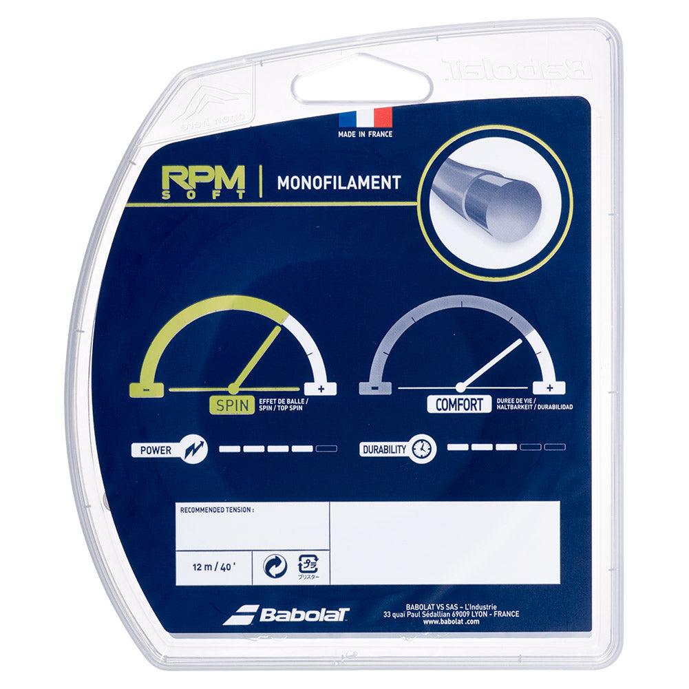 Babolat rounds out their RPM category with RPM Soft Tennis String. While RPM Blast, Rough, and Power are designed for ultra competitive players with very high swing speeds, RPM Soft is meant for players who break multifilament strings too quickly. Many tennis players find themselves stuck because they enjoy the durability of polyester strings, but they don't love the firmer feel. RPM Soft features a three layer construction with polyamide in the center, a middle layer of co-polyamide and aramid powder, and a surface layer composed of co-polyamide and silicone. The string's unique construction is designed to provide greater comfort than a polyester string, but improved durability over a multifilament.