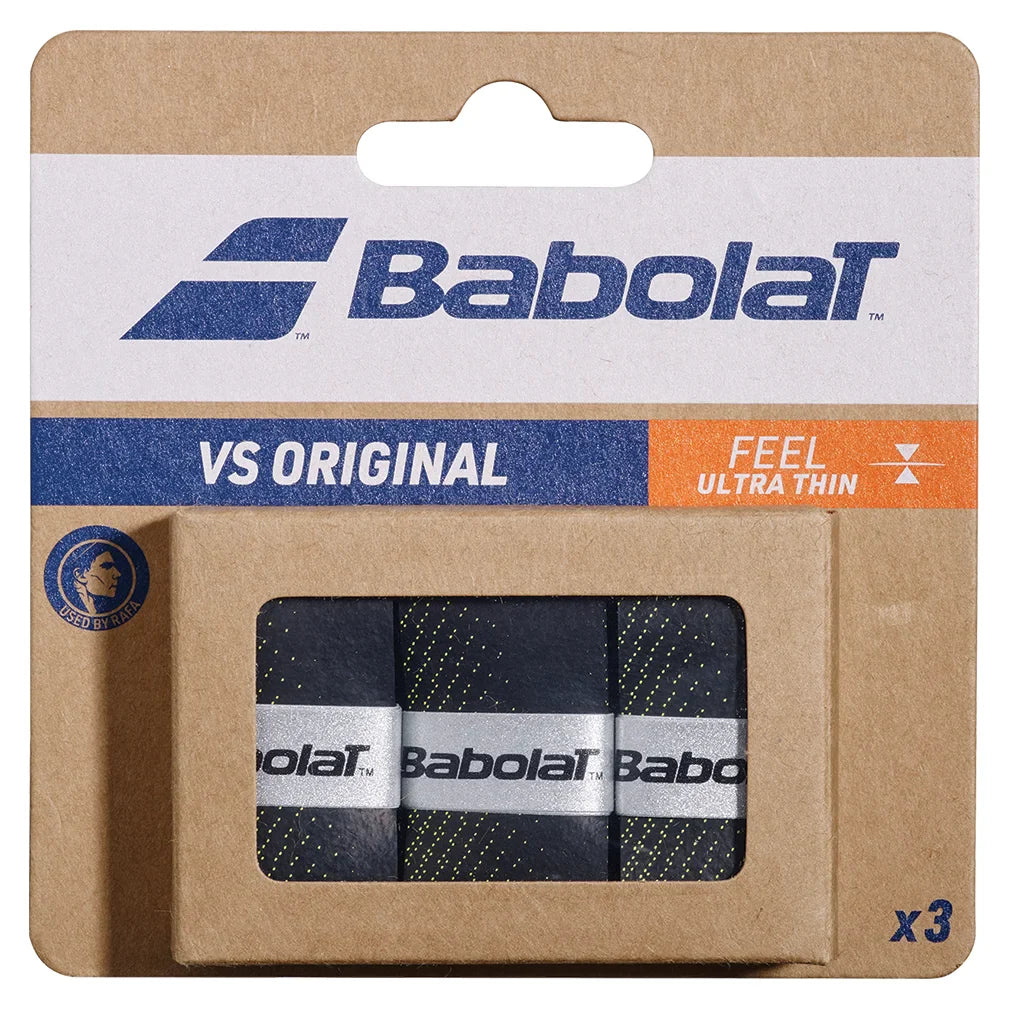 The Babolat VS Original Tennis Overgrip is the thinnest overgrip in the world (0.40 mm). This grip does not modify the size of the racquet handle, but instead provides exceptional feel and unmatched performance. Our team found that the VS Original actually aids in preventing pesky calluses and painful blisters that usually occur from long hours of play. Babolat's new material technology protects the overgrip against humidity, dirt, and optimizes overall playability and durability.