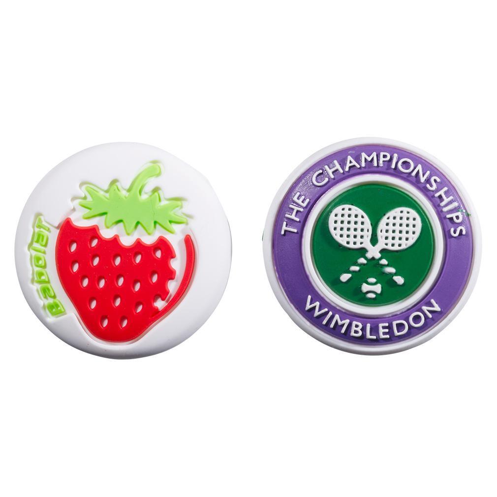 The Babolat Wimbledon Tennis Dampeners are a fun way to reduce the string vibration on your tennis racquets. One dampener features the Wimbledon logo, and the other features a Strawberry as an ode to the strawberries and creme at Wimbledon.