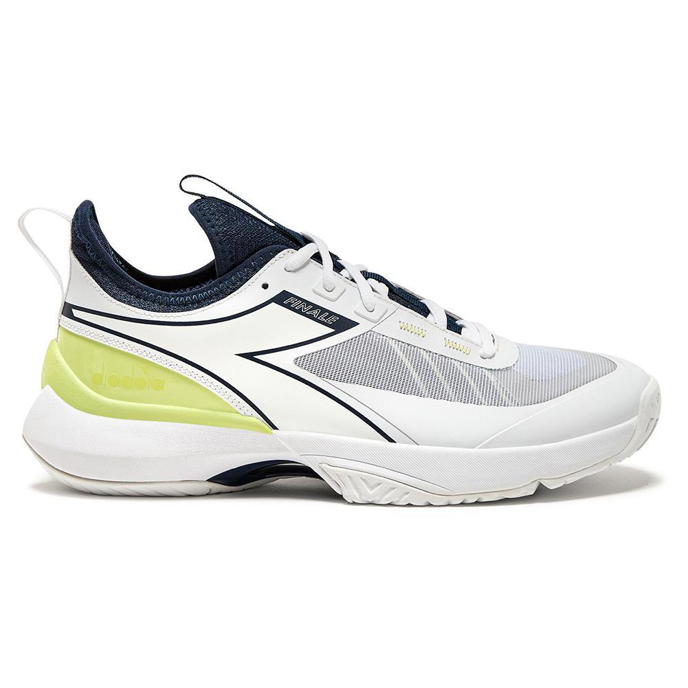 The Diadora Men's Finale AG Tennis Shoe features a solid rubber outsole with the wear-resistant Duratech 5000 compound. This shoe offers support and cushioning, all in a lightweight design. The Finale is constructed with SuprellTech and an Air Mesh upper, with p.u. transfer for excellent stability, breathability and comfort. The EVA foam insole is shockproof, and the midsole encompasses Light EVA and arch reinforcement to improve stability. The Finale is a capable shoe for club players as well as elite players.