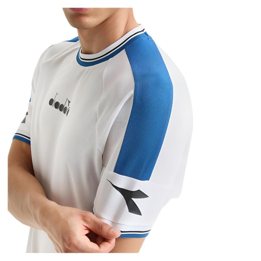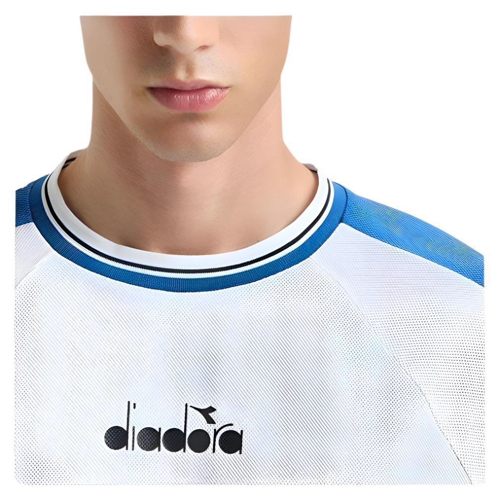 Start your legacy with the Diadora Men's Icon Short Sleeve Tennis Crew. Contrast two-tone inserts at the shoulders provides a retro-inspired look, plus logo emblems at the sleeves create a sporty, athletic look. The pique fabric offers flexibility for more comfort and better on-court performance. Dia Dry technology gives the fabrics moisture-wicking properties that move sweat away from your skin for fast-drying relief which keeps you cool on the court.