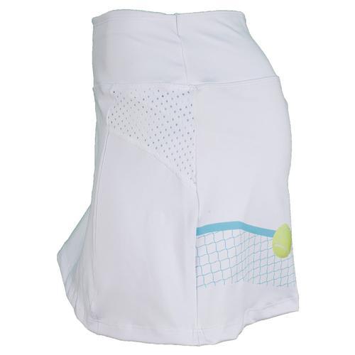 Show off your savvy sense of style in the Doué Women's Net Set Tennis Skort. Simple pull-on styling makes for long-lasting comfort while the fun ball and net graphic on the sides is sure to draw compliments. Mesh insets provide maximum ventilation so you stay fresh-feeling and teh built-in short provides both coverage and storage, making the skort just as functional as it is fashionable. Pair it with the Coordinates with the Women's Net Set Tennis Tank or mix and match it with your existing tennis wardrobe for a fresh new look!