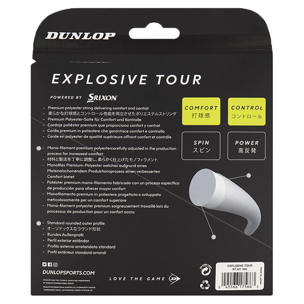 Dunlop Explosive Tour Silver 16G Tennis String is a co-polyester string designed with comfort and control in mind. The string has a smooth round surface to help it slide and realign for dynamic spin production and consistency. This 16 gauge version will play slightly firmer and more durable than the 17 gauge version.