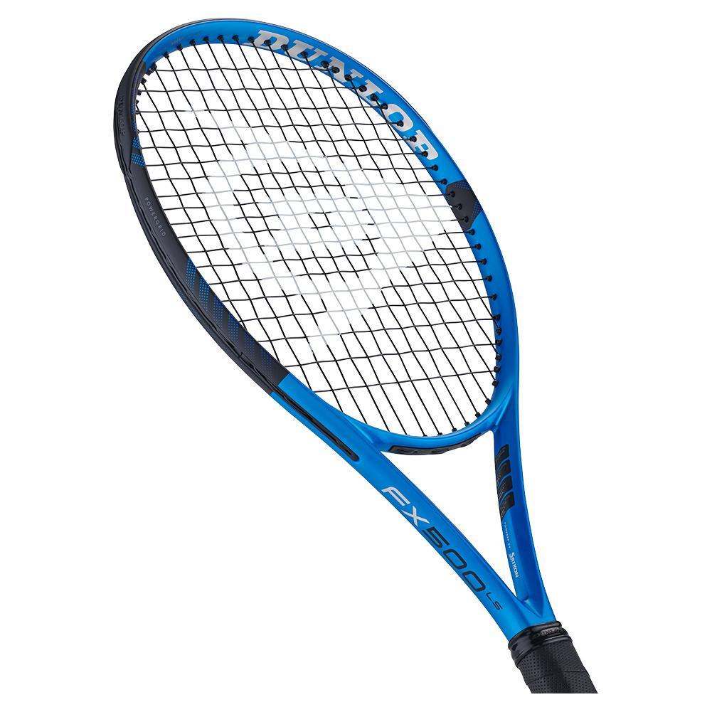 The Dunlop FX 500 LS 2023 Tennis Racquet is built on the concept of controllable power. Dunlop's Sonic Core technology with Infinergy, consists of an elastic foam inside the racquet head for greater dampening and comfort.The entire hoop incorporates a new Power Boost Groove+ under the grommets to increase string movement and simultaneously create more power and comfort. The FX series features Power Boost frame geometry which combines an aerodynamic head, modern shaft design, and a wider throat to improve stability. For 2023, Dunlop softened the flex of the shaft and hitting face for more comfort and ball bite. The FX 500 LS features a light 10.1 ounce weight (unstrung), 100 square inch head, and a 16x19 string pattern. The LS brings a slightly crisper response than the 500 and 500 Tour. This model works well for competitve beginners and intermediate players who want plenty of manueverability in a well rounded frame.