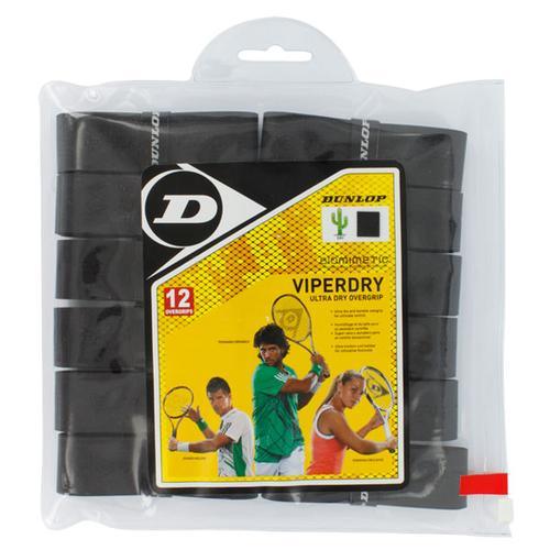 The Dunlop Viperdry Black 12 Pack Ultra Dry Overgrip is a premium grip inspired by the Sand Viper and is specifically designed to give a dry feel in all conditions. It is made to enhance your grip, control, and comfort with the racquet handle. This overgrip is thin and comes in a pack of 12.
