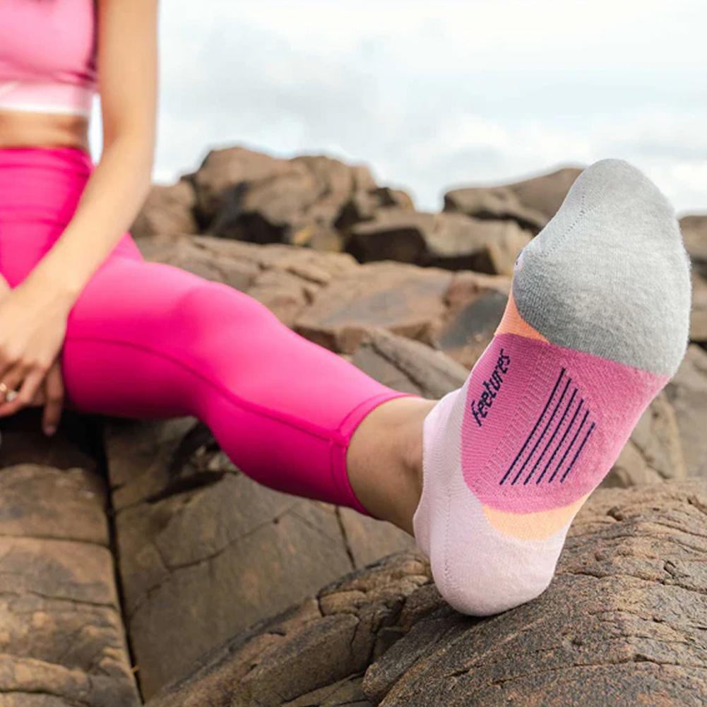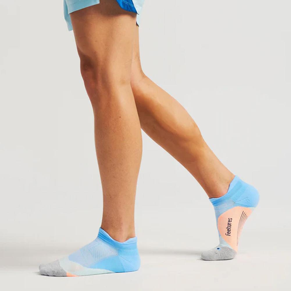 Step into something comfortable with the Feetures Elite Light Cushion No Show Tab Socks. These innovative socks are just the thing to keep your feet comfortable within your tennis or pickleball shoes. Being no-show socks, they are ideal for warm, sunny days when you might want a little tan on your ankles. Made with an anatomical design and a seamless toe, these socks are designed for maximum comfort. iWICK Fibers help keep sweat from accumulating, keeping your feet dry and ensuring you can play all day. Socks are designed to have a snug but not tight fit: if you are between sizes, order 1 size up.