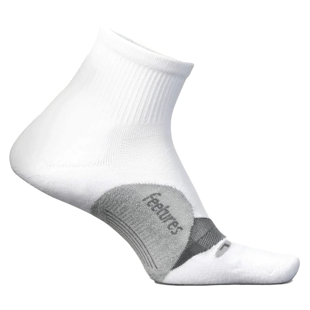 The Feetures Elite Light Cushion Quarter Tennis Socks are the most technically advanced sock in the Feetures line up. Targeted compression helps with support and comfort and Light Cushion is added for impact protection. High density cushioning provides extra protection in high impact areas. The 3" quarter length offers ankle protection from dirt. iWick fibers wick moisture to keep feet cool and dry, and The Perfect Toe tech has no irritating toe seam. Socks are designed to have a snug but not tight fit: if you are between sizes, order 1 size up.