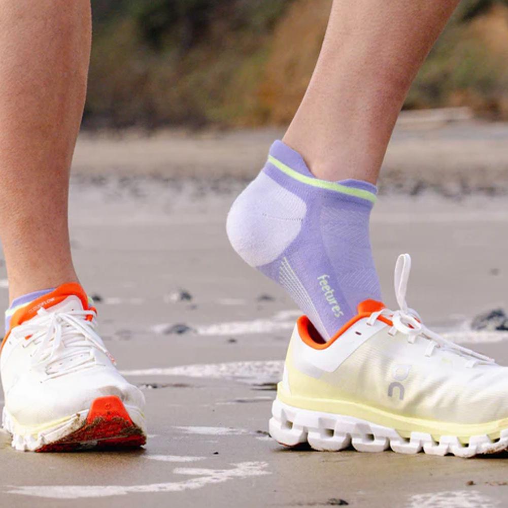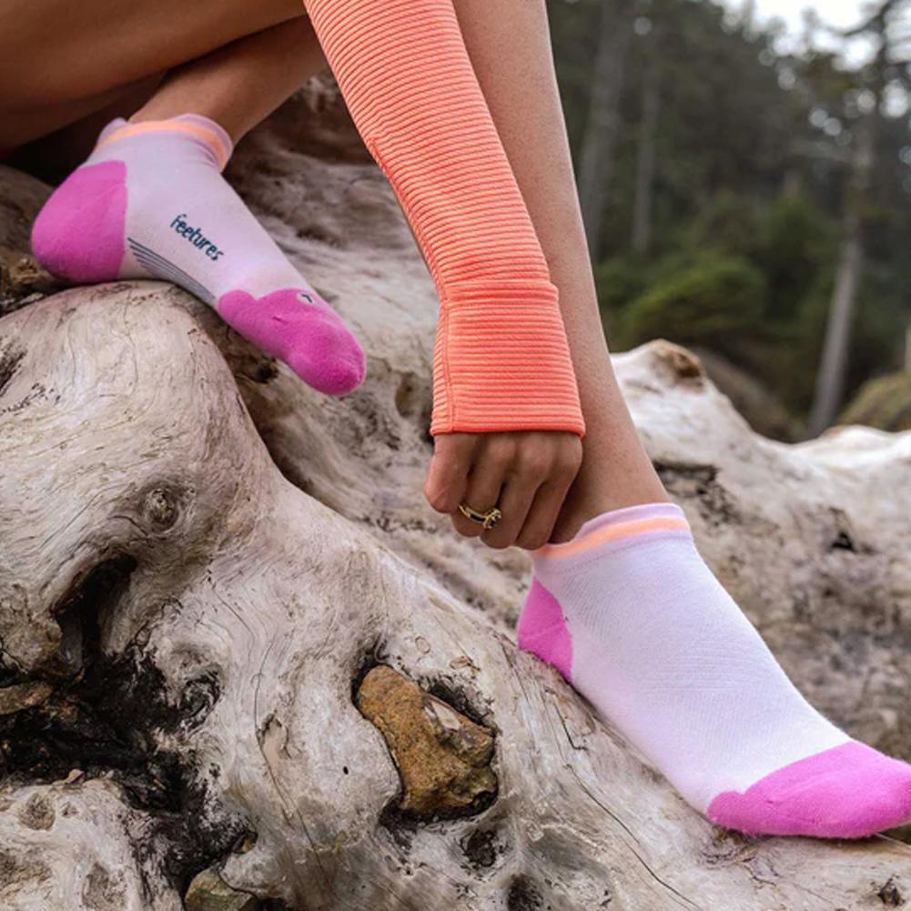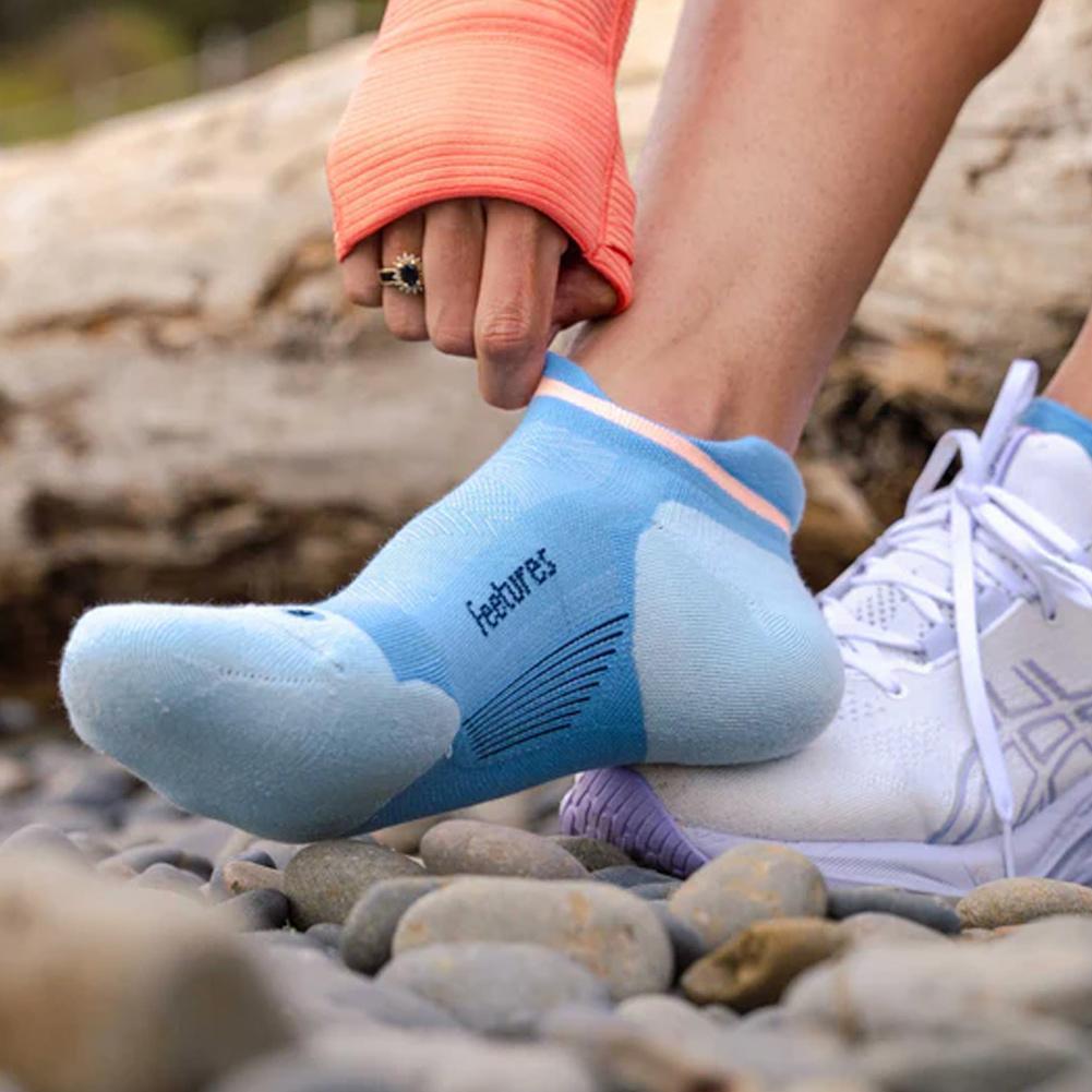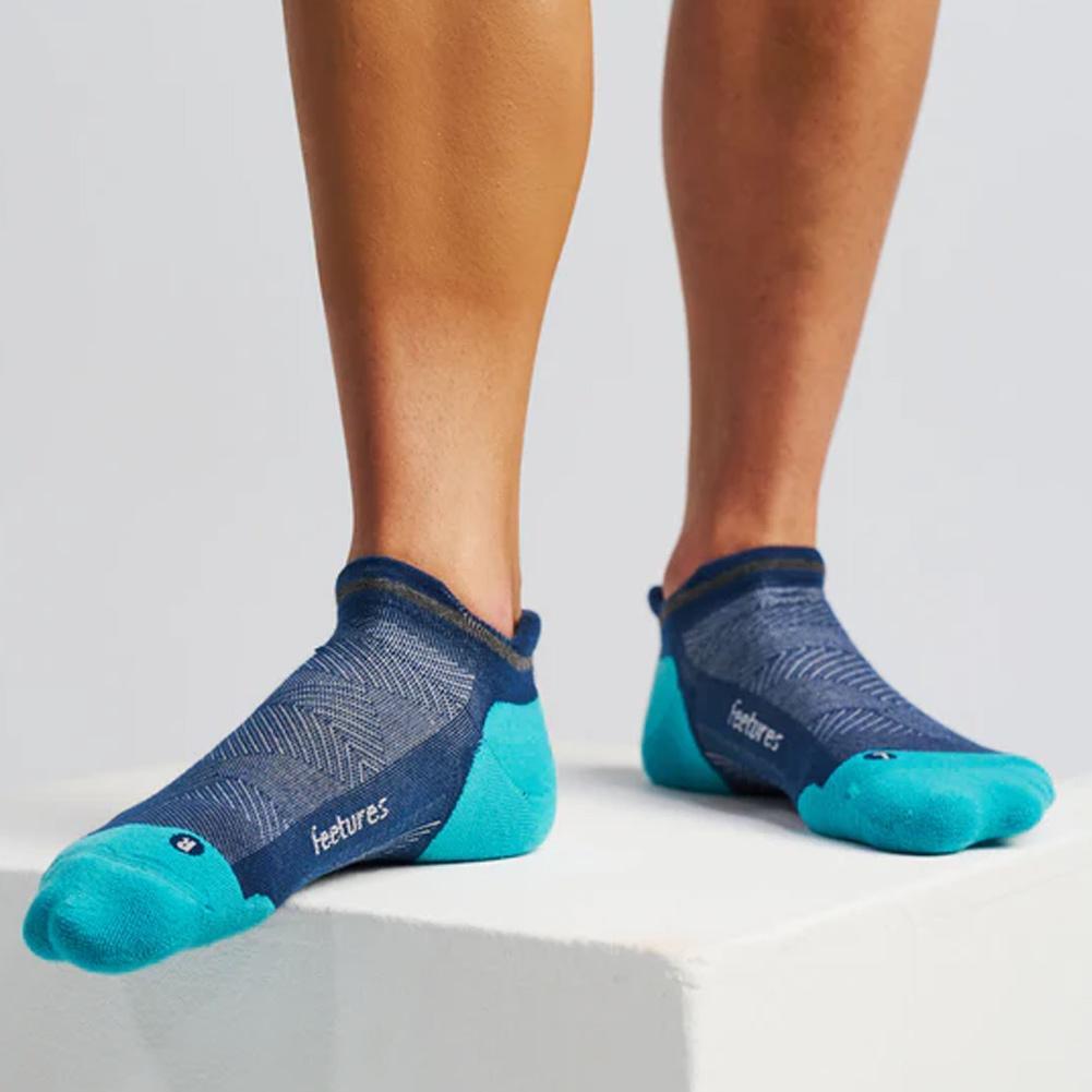 Enjoy max comfort with the Feetures Elite Max Cushion No Show Tab Socks. These innovative socks are just the thing to keep your feet comfortable within your tennis or pickleball shoes. Being no-show socks, they are ideal for warm, sunny days when you might want a little tan on your ankles. Take advantage of their targeted compression, so you can hit the court with confidence. Made with an anatomical design and a seamless toe, these socks are designed for maximum comfort. iWICK Fibers help keep sweat from accumulating, keeping your feet dry and ensuring you can play all day. Socks are designed to have a snug but not tight fit: if you are between sizes, order 1 size up.
