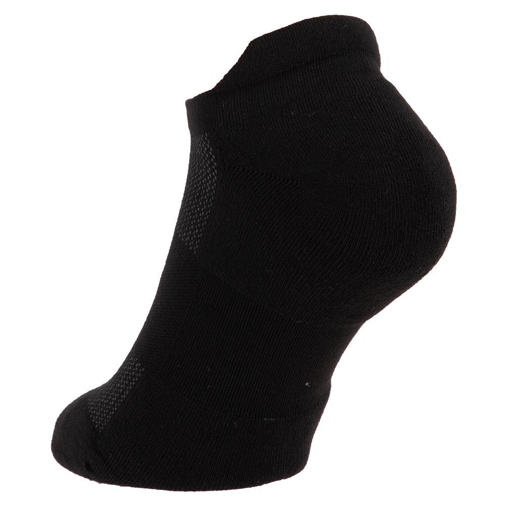 Feetures! Original No Show Tab Sock Black has extra cushioning for making the grind of a tennis game less of a load. The Original No Show does not contain the bulk of some cushioned socks, made of polyester, nylon, olefin and lycra spandex. The fit of the Feetures Tab Black Sock is both secure and supports the foot in all of its motions during a tight match or sweaty practice. The Feetures Original No Show Tab Women's Black Sock comes in cool black.