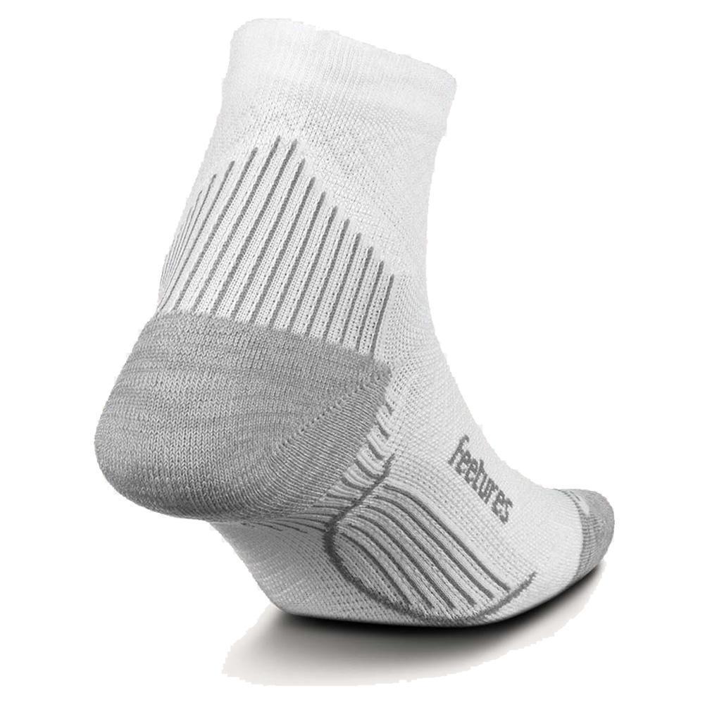 Give your feet the rest they deserve with the Feetures Plantar Fasciitis Relief Light Cushion Quarter Socks. These socks use targeted compression that focuses on the heel and arch to provide pain relief. The cushioning used in strategic areas to provide comfort without adding too much bulk. With its 3" above-the-ankle length, the tab help prevents chafing and gives support along the Achilles tendon. Socks are designed to have a snug but not tight fit: if you are between sizes, order 1 size up.