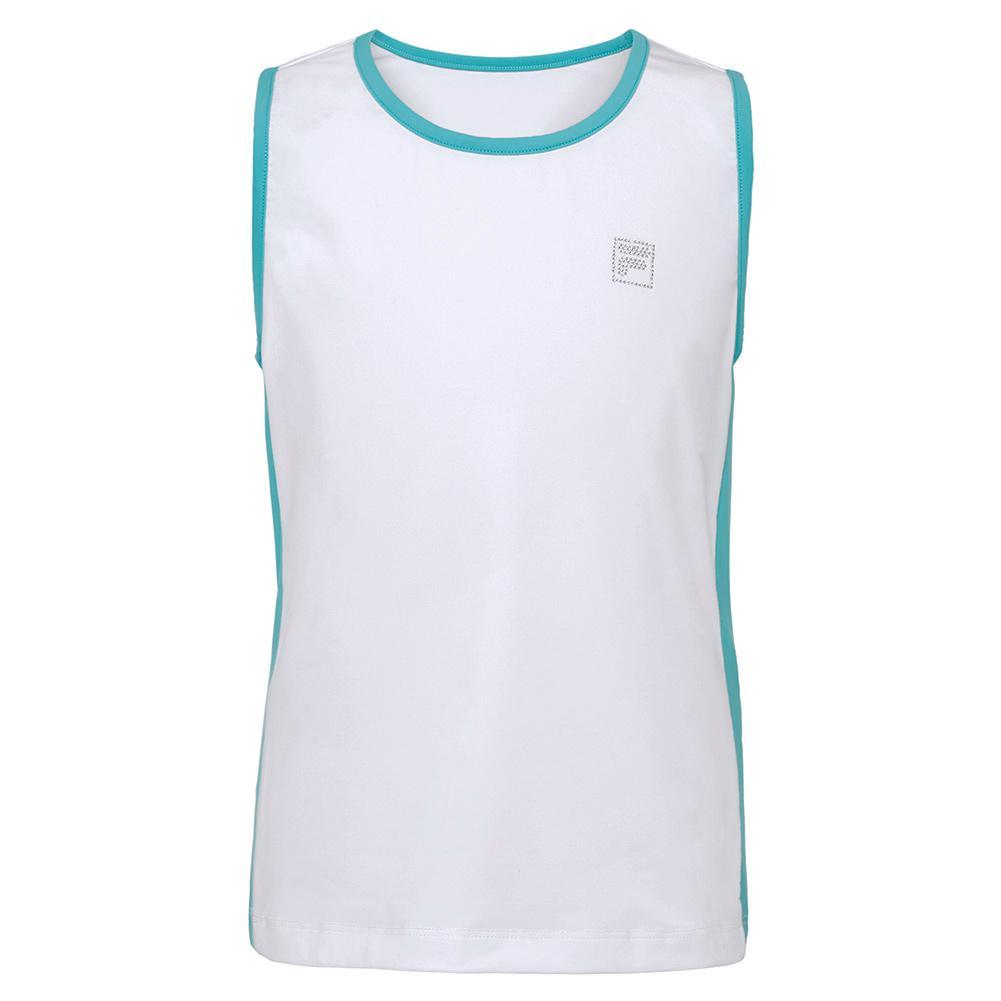Get her ready for any challenge with the Fila Girls' Essentials Full Coverage Tennis Tank. Contrasting panels at the side bring and neck bring out the stellar designs, which include a silver rhinestone F-box logo that dazzles the competition. Flexible fabrics enable her to perform her best while moisture-wicking technology with anti-odor treatment keeps her feeling fresh. Protect her skin from harm with the help of UPF 50+ sun-blocking tech, filtering out up to 98% of UV rays to minimize sun-damaged skin.