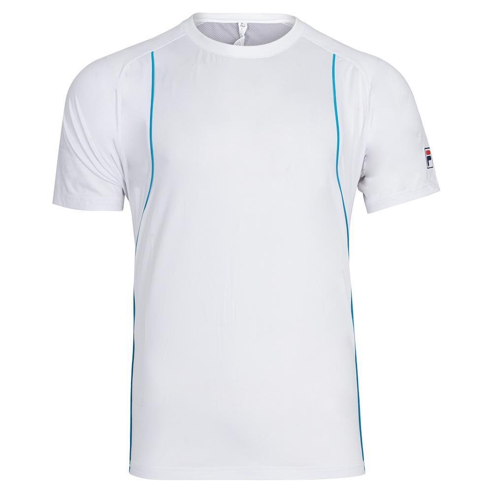 Take your game to the next level with the Fila Men's Backspin Short Sleeve Mesh Tennis Crew. Contrast piping down the torso highlights the color-blocked paneling that creates a futuristic, athletic style. Raglan style sleeves enable more natural-feeling upper arm movements, plus the mesh back body allows for exceptional breathability. Stretchy fabrics incorporate moisture-wicking properties to boost your on-court performance while anti-odor technology helps you stay fresh throughout your activities. UPF 50+ sun protection blocks out harmful UV rays to keep your skin safe from sun damage.