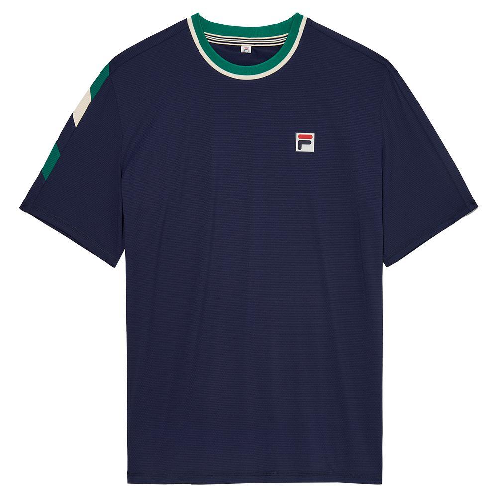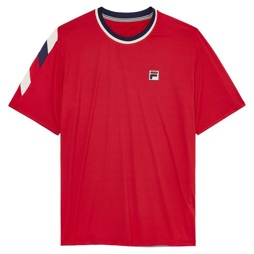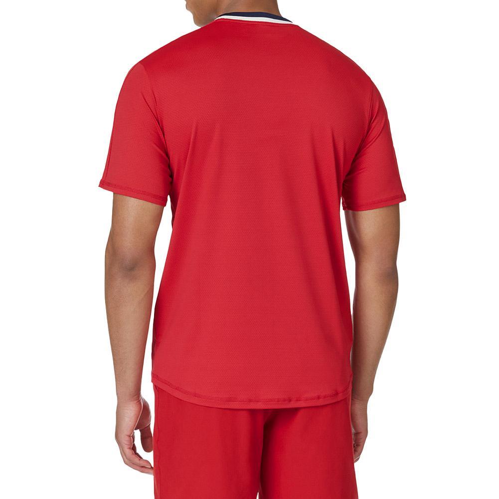 Bring out the best in you with the Fila Men's Heritage Short Sleeve Tennis Crew. This shirt features design elements to commemorate Fila's legacy, with special mention of the contrasting sleeve stripes made in Fila's signature colors. Flexible fabrics enable you to perform your best, plus moisture-wicking technology with anti-odor treatment keep you feeling fresh on the court. UPF 50+ sun protection keeps your skin safe from sun damage, blocking out up to 98% of harmful UV rays.