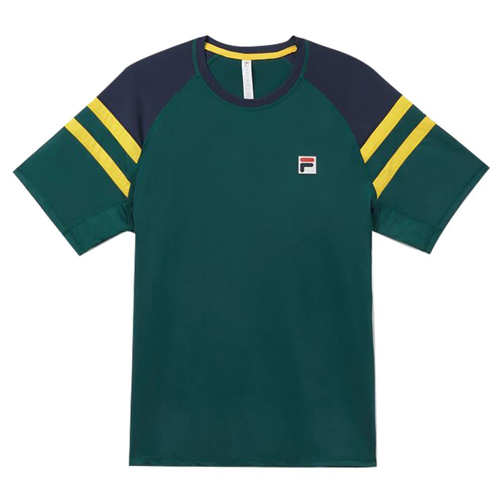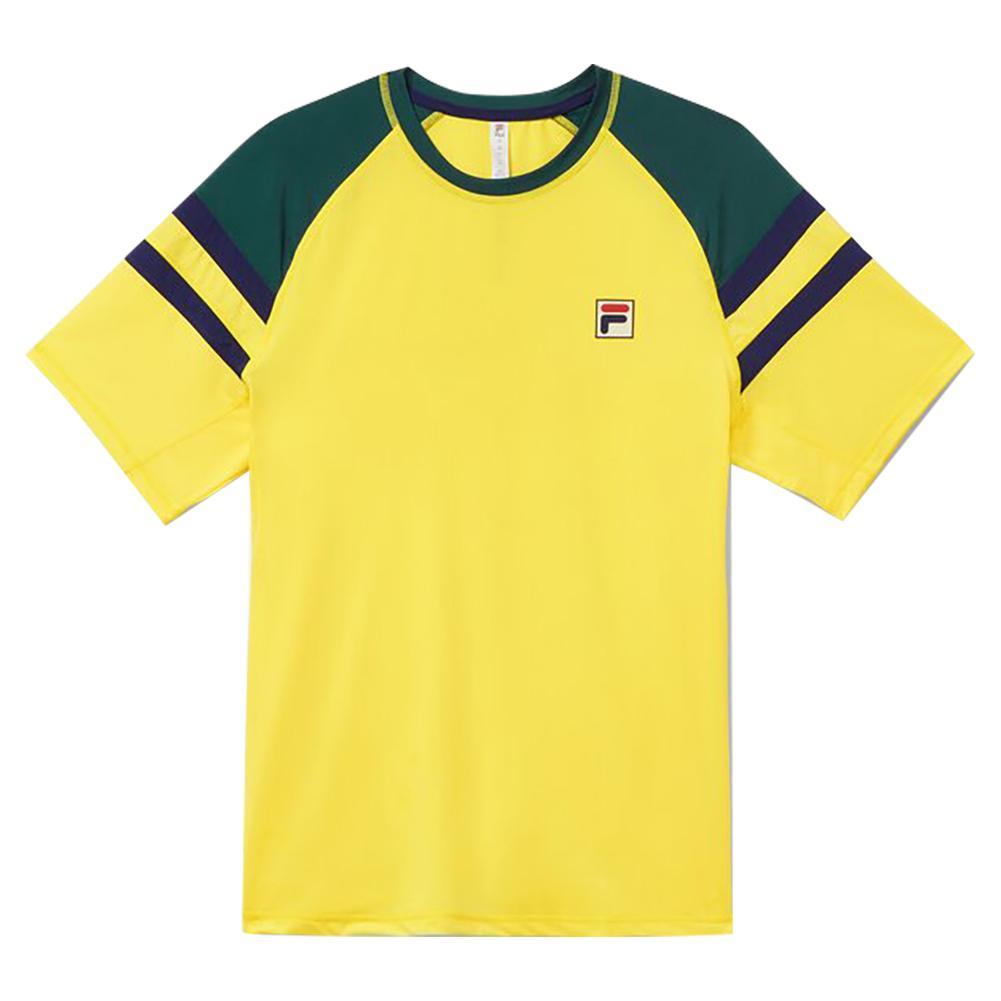 Performance meets style with the FILA Men's Heritage Tennis Crew. This shirt is made using flexible polyester jersey fabrics and designed with raglan-style sleeves that shape naturally to your arms for better swings and serves. Breathable rally mesh inserts at the underarms and sides provide ventilation in high-heat areas. Moisture-wicking materials treated with anti-odor properties keep you feeling cool and confident throughout even the most heated and intense moments. With UPF 50+ protection on your side, you have one more layer to keep you safe from the sun's harmful side effects.
