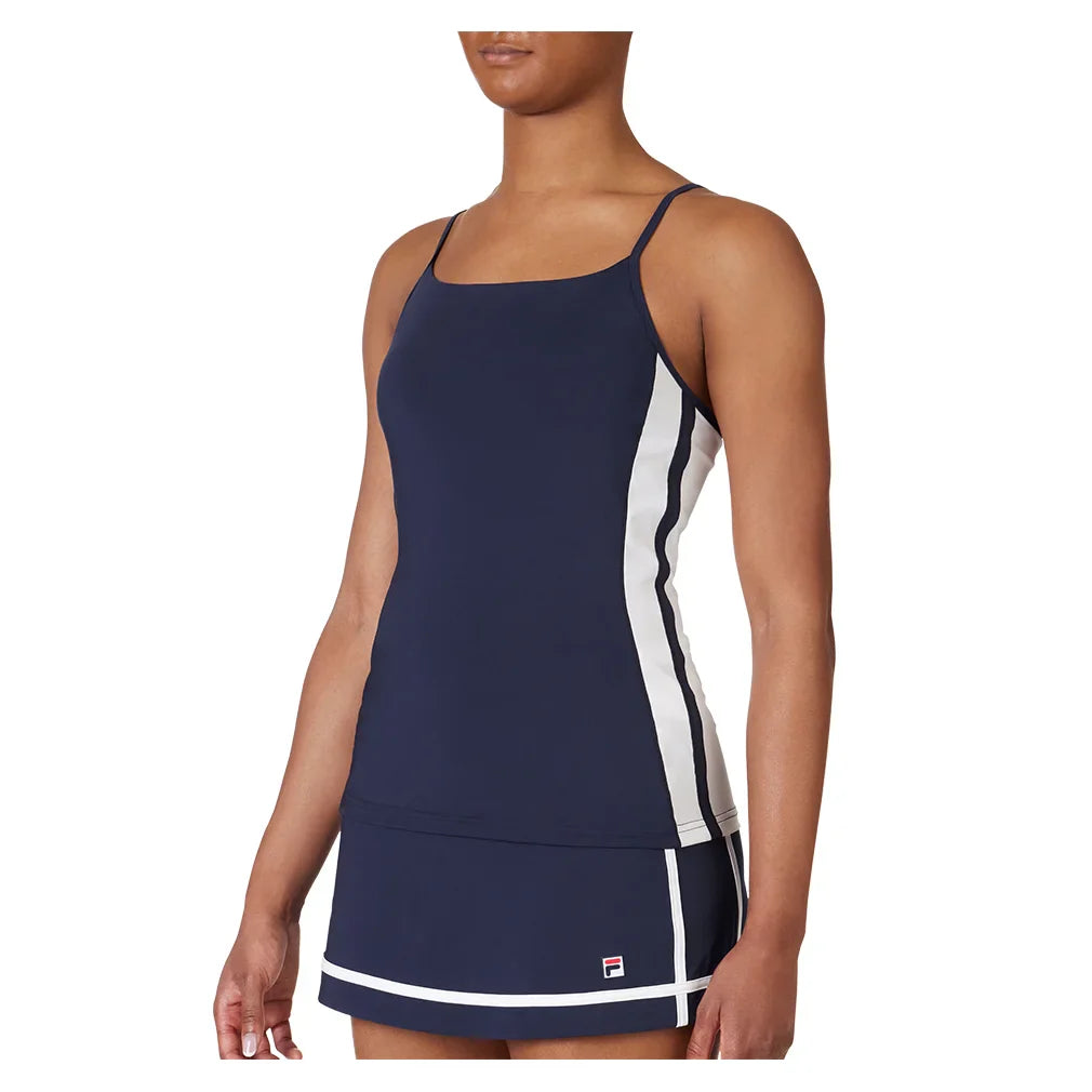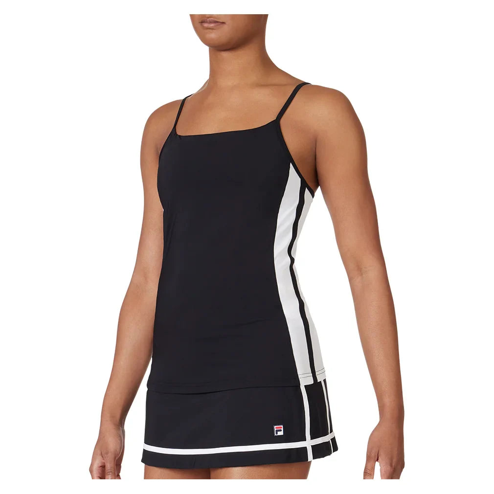 Hit the aces in the Fila Women's Essentials Cami Tennis Tank. Its thin straps feel unobtrusive and an inside self-fabric bra with removable cups provides additional support. Moisture-wicking fabrics with 4-way stretch give cooling relief with the flexibility to maximize your performance. To stay fresh, anti-odor treatment minimizes the growth of odorous bacteria. UPF 50+ sun protection keeps your skin safe from up to 98% of the sun's most harmful UV rays.