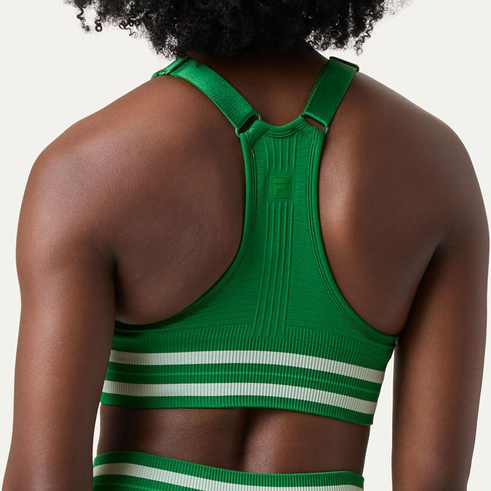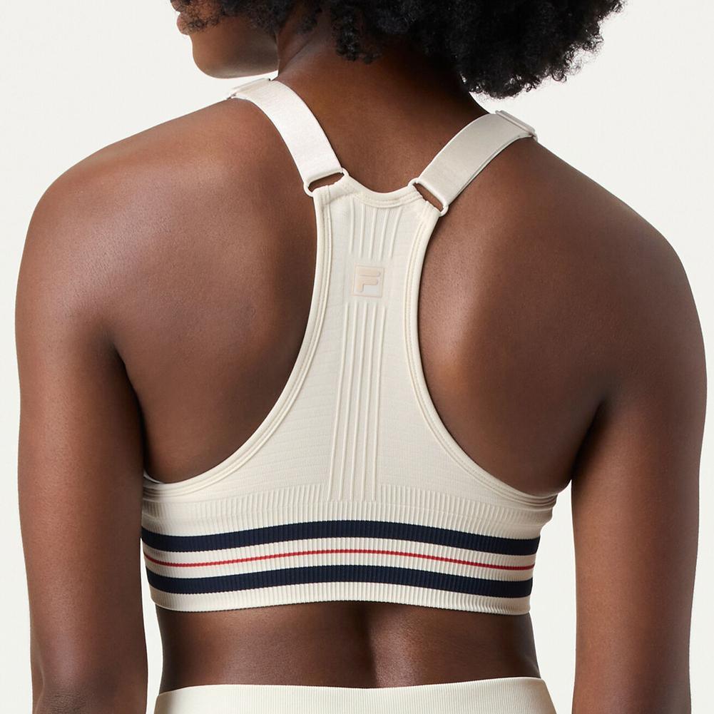 Enhance your activewear collection with the Fila Women's Lucky Ace Seamless Tennis Sports Bra. Featuring moisture-wicking and anti-odor technology, this bra keeps you fresh and dry during intense workouts. Sculpting lines along the chest, back, and shoulders create a flattering silhouette, while ribbed texture detailing adds sophistication. Adjustable elastic straps ensure a customized fit, making this sports bra ideal for both functionality and comfort.