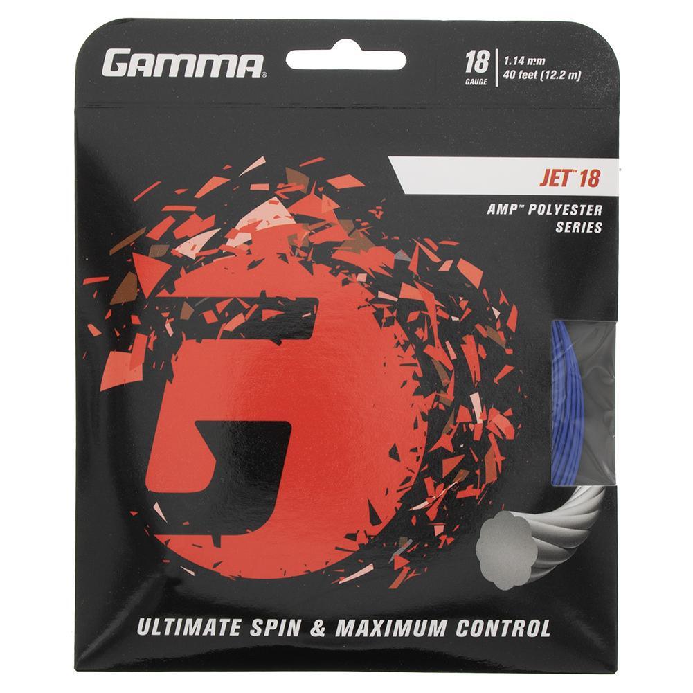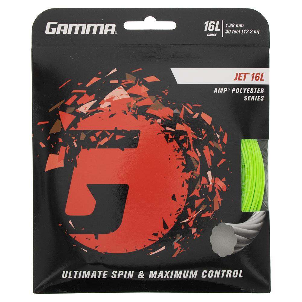Gamma Jet Tennis String is a co-polyester string with a twisted, ribbed shape profile and a textured surface. Jet is designed to help players get tons of spin while experiencing greater ball pocketing. Jet rewards players who deliver punishing shots from the baseline all day long. Gamma's polyeste strings use high energy co-polyester materials and are manufactured with a proprietary, multistage drawing process to increase strength and minimize tension loss for maximum durability and longer play duration.