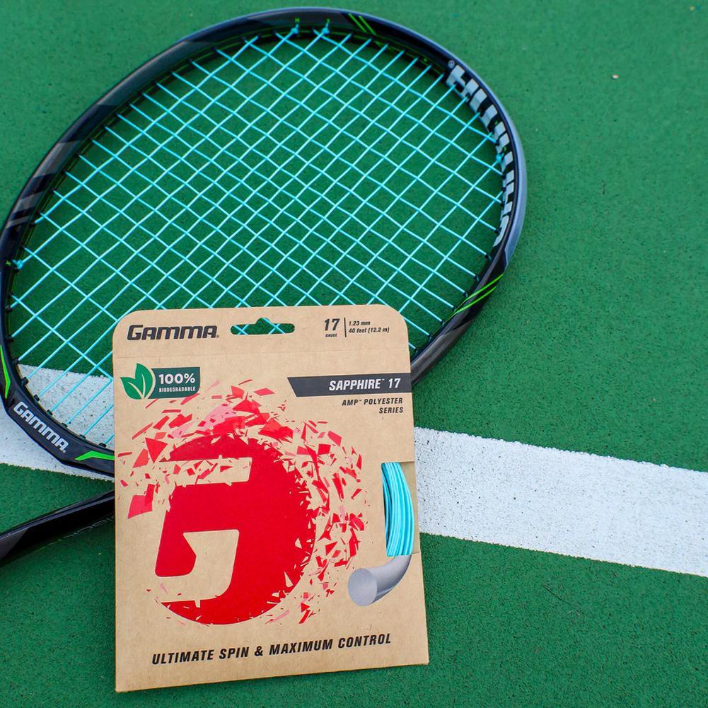 Gamma Sapphire Tennis String is a 100% biodegradable polyester tennis string that rewards fast swings with control and a crisp feel. The string features a low-powered response that will be a favorite for players who can provide their own power.