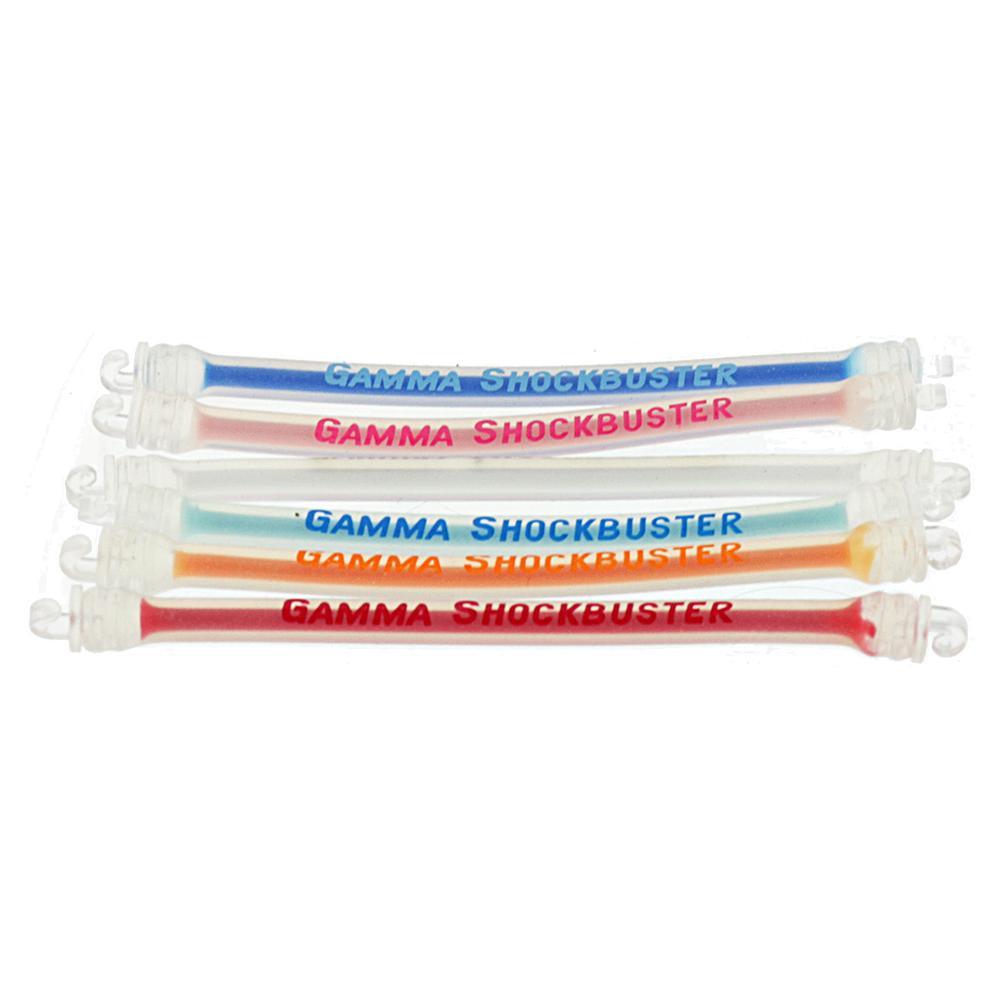 The Gamma Shockbuster 48 Piece Jar has assorted colors of one of the most famous shock dampeners around. The Shockbusters are woven under the lowest cross string and make a great dampened "thud" when contacting the ball. The jar is great for counter tops in pro shops, or for coaches in need of a bunch of dampeners.