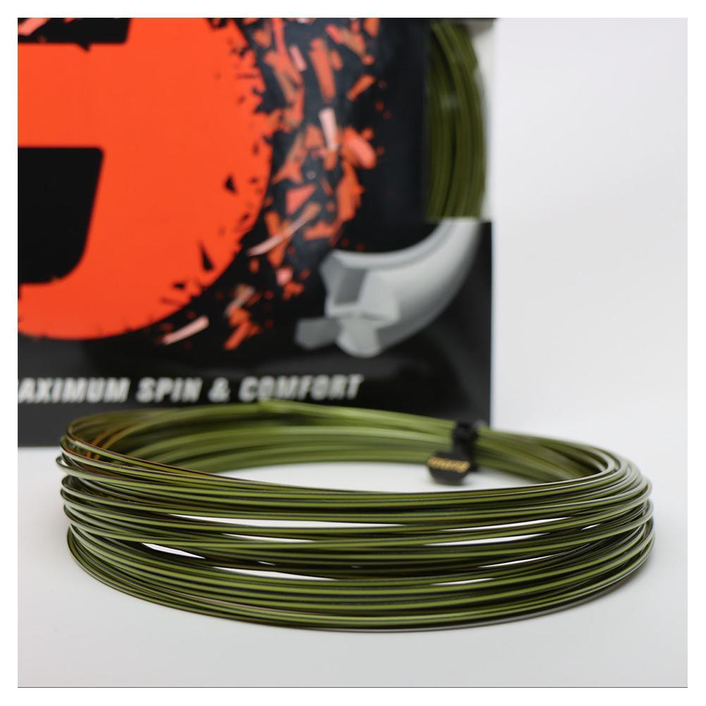 Gamma Verve Soft Tennis String utilizes a co-extrusion build to combine soft and stiff materials for power, control, and most importantly comfort. 3 filaments protrude from the string to create impressive ball bite and a unique design. The interior of the string is composed of a soft material while the three prongs are constructed of stiffer polyester material. Verve Soft is a string for heavy top spinners, who want a little more comfort from a co-polyester string.
