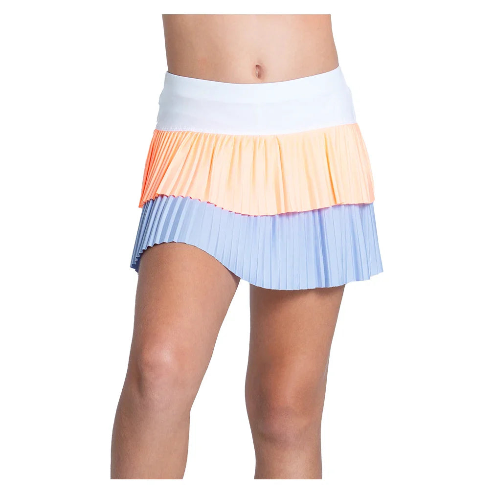 Let her take the court in confidence with the Lucky In Love Girls' Doubles Pleated Tennis Skort. Designed for all-day comfort and performance, this skort features a comfortable wide elastic waistband and a built-in undershort for added coverage and mobility. The straight silhouette offers a clean, classic look, while the pleated design adds a playful edge perfect for matches or practice.