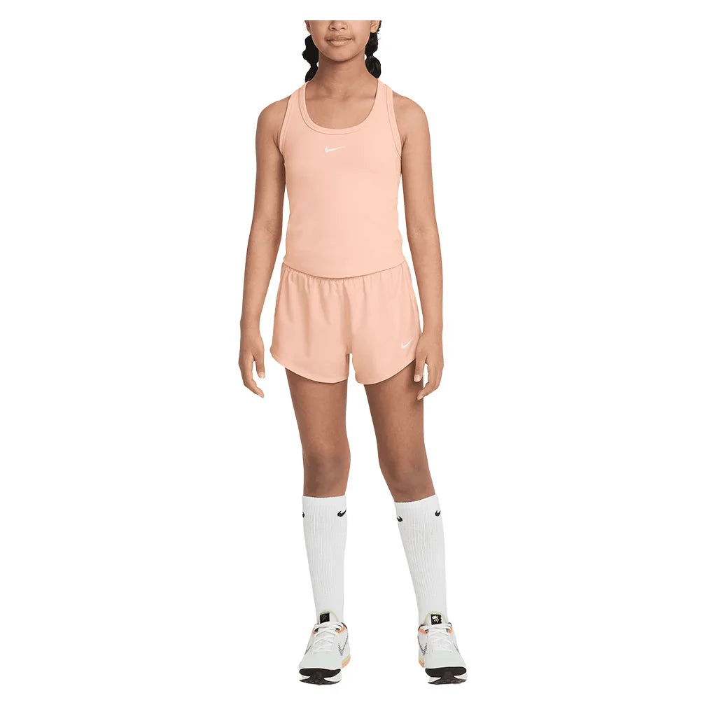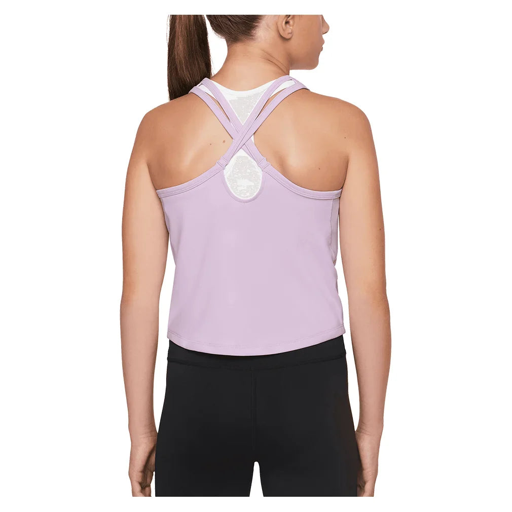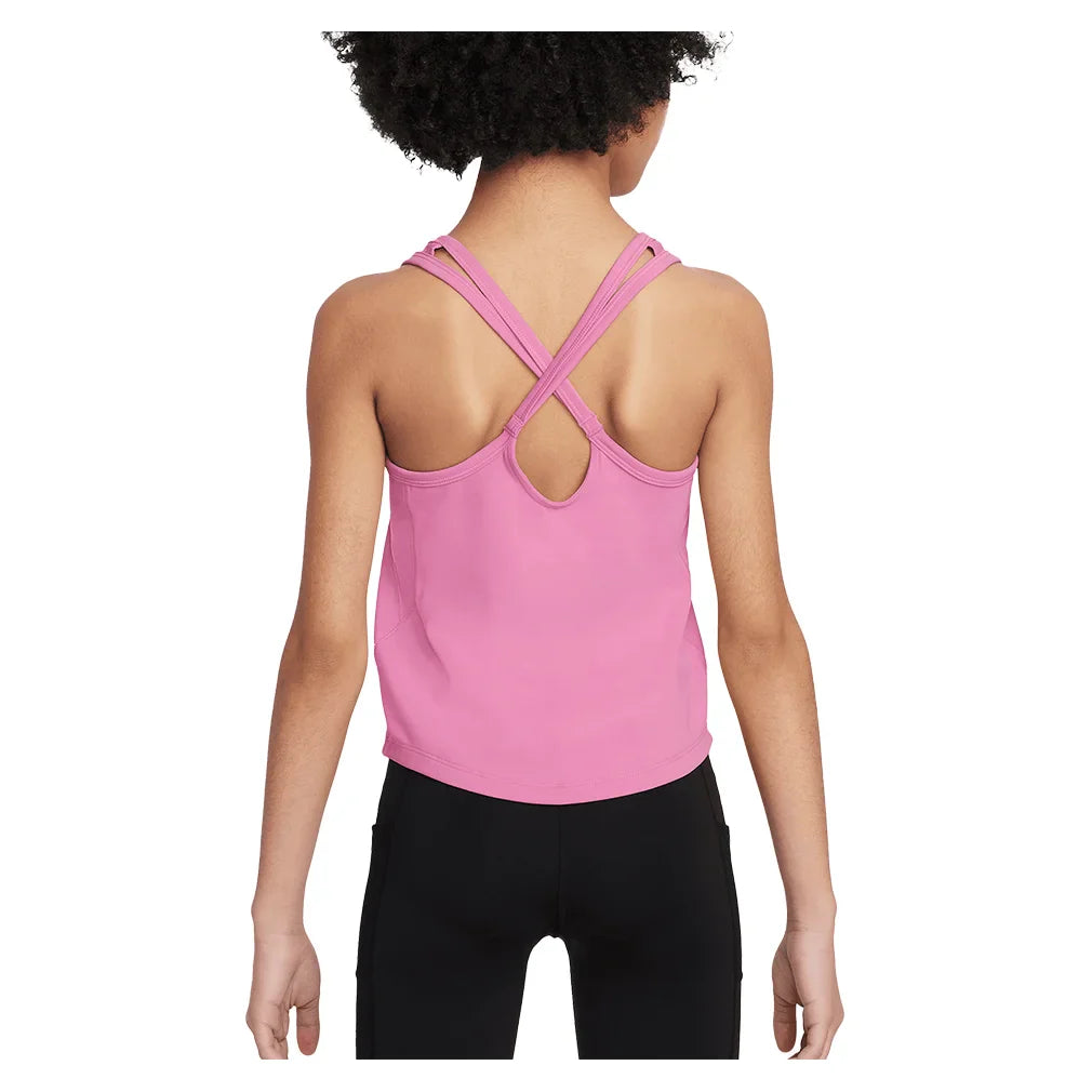 The NIKE Girls' Dri-FIT One Training Tank is perfect for whatever gets you moving. Play, practice and tennis match whatever it is, this tee keeps you dry and comfortable so you can do your best and have fun. It uses Nike's Dri-FIT technology to keep sweat away from your body so that you can focus on what matters most: having fun! The fabric is lightweight and breathable, so it feels like a classic t-shirt without feeling too loose or too slim. The ribbed collar stretches so you can easily pull the shirt on and off.