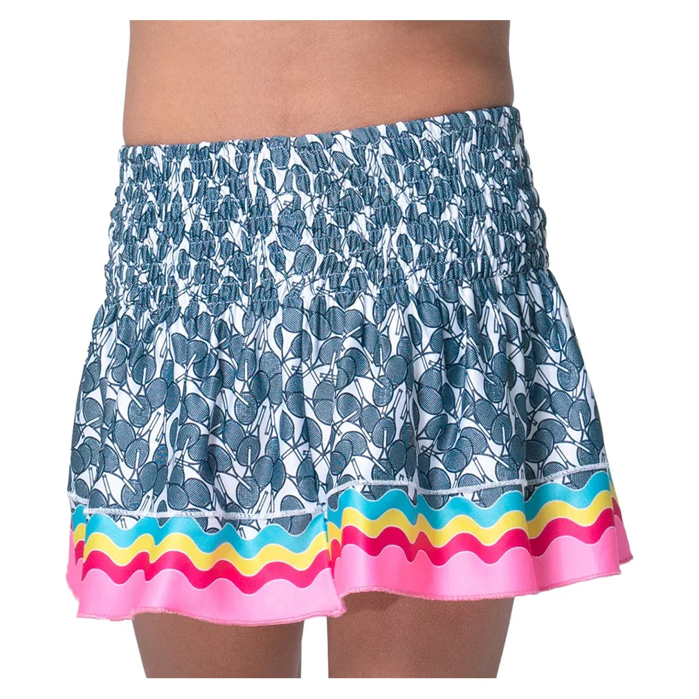 Add a fun and sporty touch to her game with the Lucky In Love Girls' Berry Smocked Tennis Skort. Featuring playful two-tiered ruffles, this skort combines style with performance. The comfortable, smocked elastic waistband ensures a secure fit, while built-in undershorts provide the support and coverage she needs for full freedom of movement on the court. Perfect for young athletes looking to shine with both flair and function.