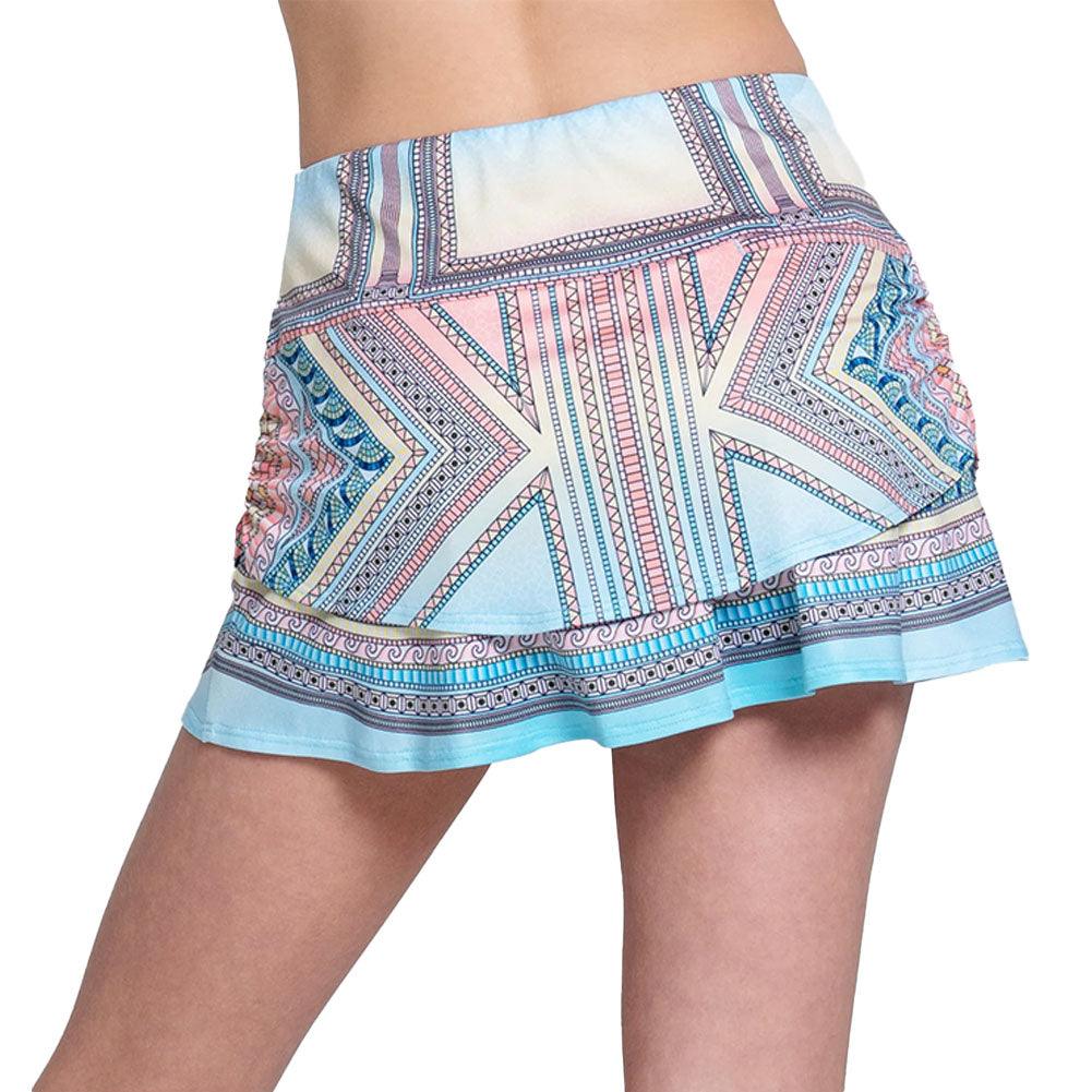 Bring some flair to the court in our Lucky in Love Girl's Lucky Club Ruche Tennis Skort in Cool Blue. It features ruched sides, a ruffled bottom layer, a wide waistband, and built-in ball shorts.