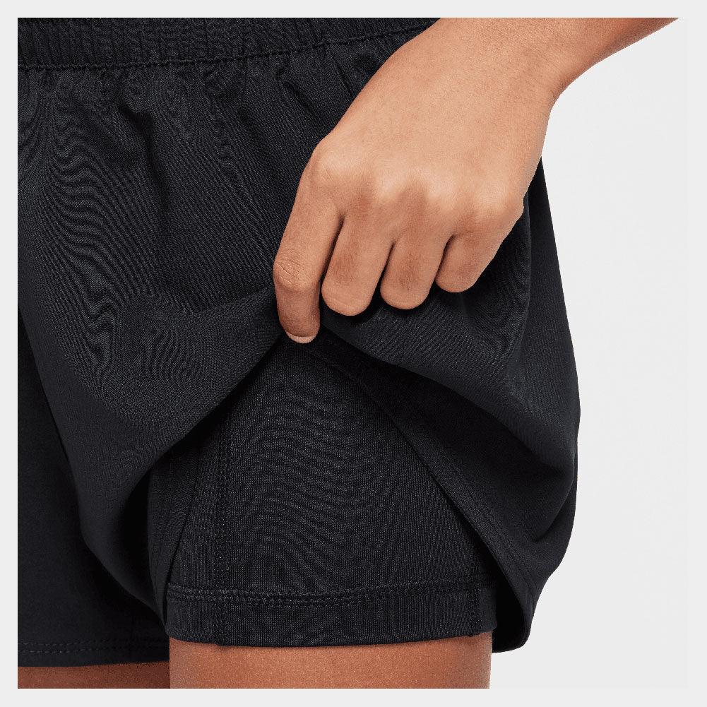 Have her show off her style on the court in our Nike Girls' One Dri-Fit 2in1 3-inch Tennis Shorts. These shorts are made with sweat-wicking anti-chafe materials to keep her cool and comfortable while on the court. Complete with a stretchy elastic waistband so she can stay on the move.