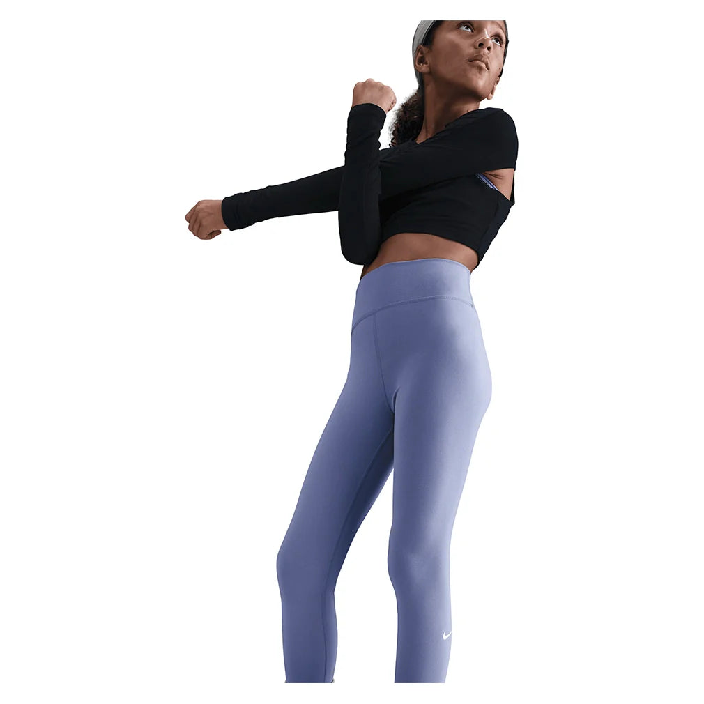 Girls' One Dri-FIT High-Waisted Training Leggings World Indigo and White