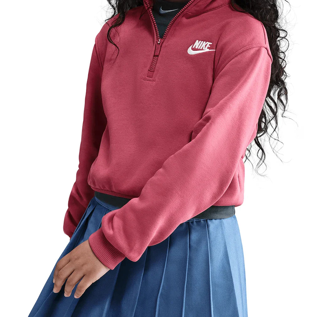 Girls' Sportswear Club Fleece 1/2-Zip Long-Sleeve Top Sweet Beet and White