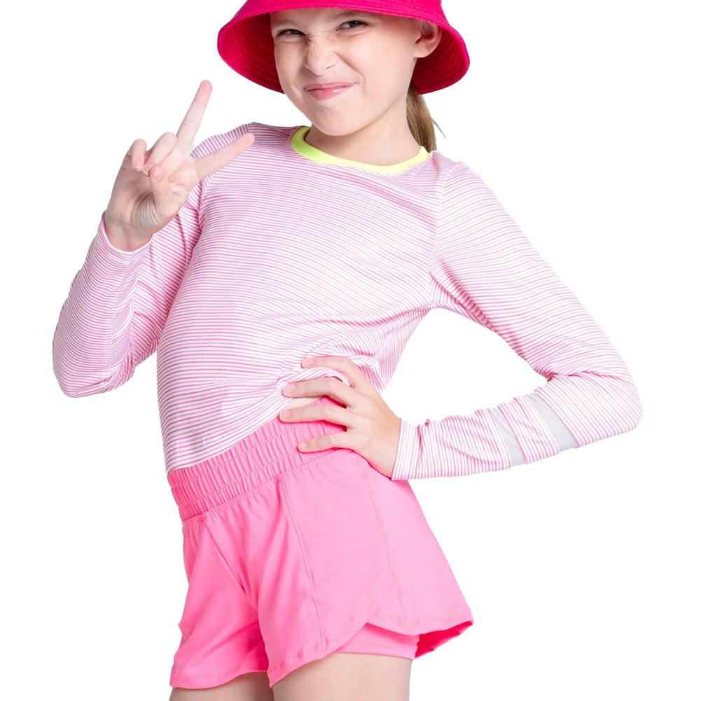 Girls' Victory Steak Long Sleeve Tennis Top Pink