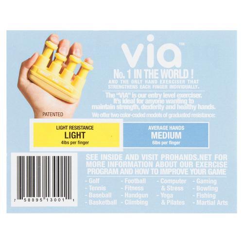 The Pro Hands Via Hand Exerciser is the perfect beginner grip for players looking to strengthen their hands and improve dexterity. The Via challenges each individual finger using spring-loaded tension set at 4 pounds per finger, increasing overall hand health and performance by building muscles, ligaments, and tendons. This lightweight model is ideal for children over 12 and seniors.