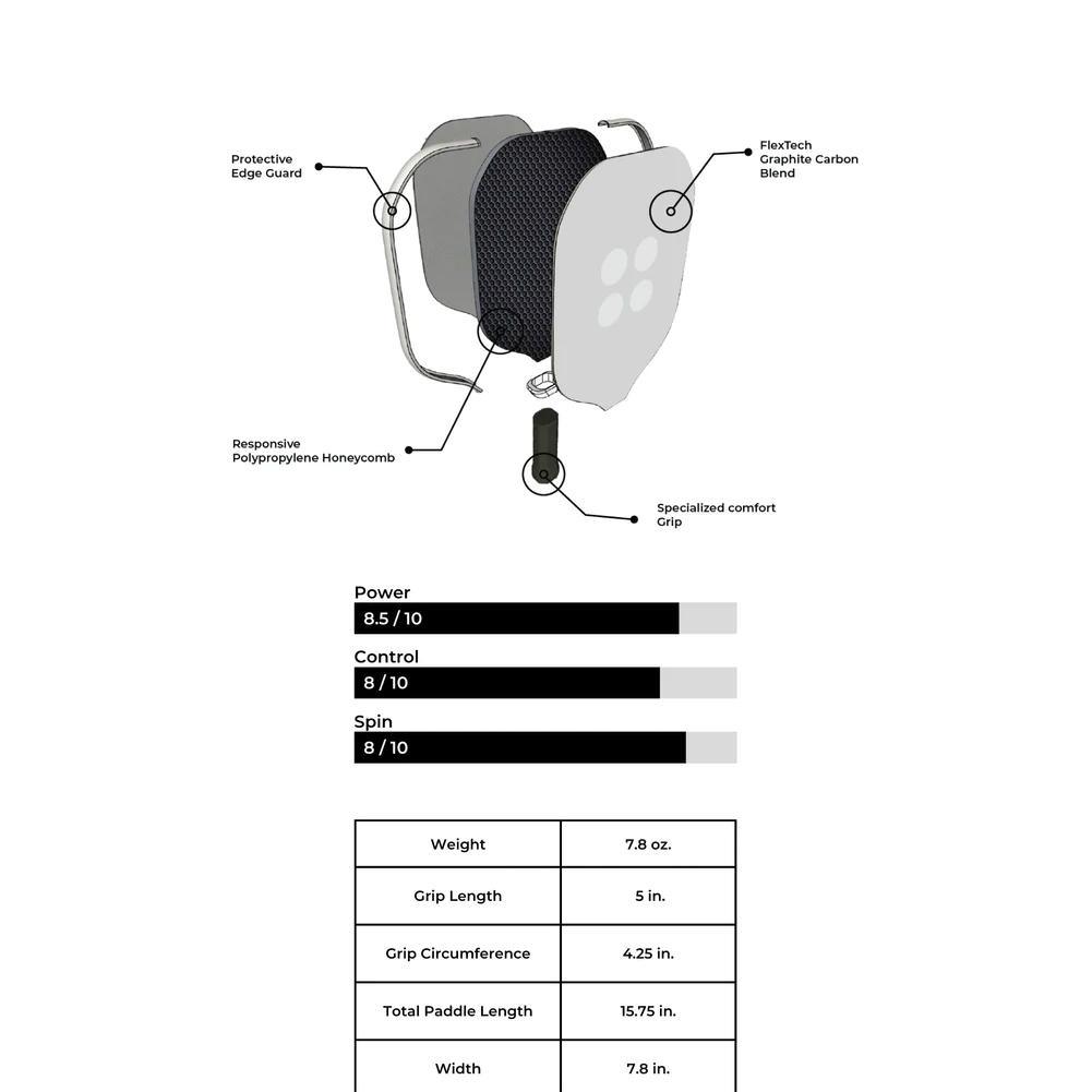 Steal the spotlight with the Holbrook Centre Court Pickleball Paddle. This paddle is made with a hybrid hitting surface that combines the properties of carbon fiber and graphite to give both power and control to your shots. The polypropylene core offers responsiveness to help you react and move on to the next hit. Its tacky overgrip and moderate handle length allows for superior maneuverability that accommodates for all sorts of play styles.