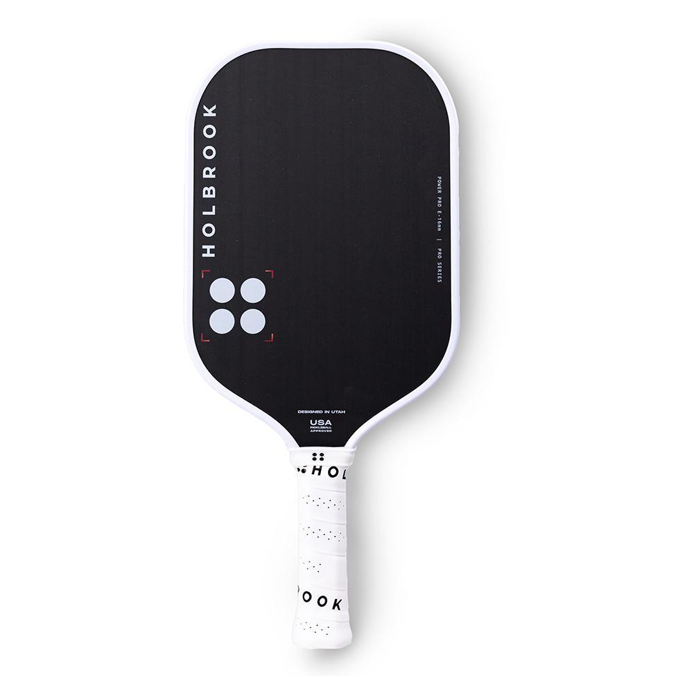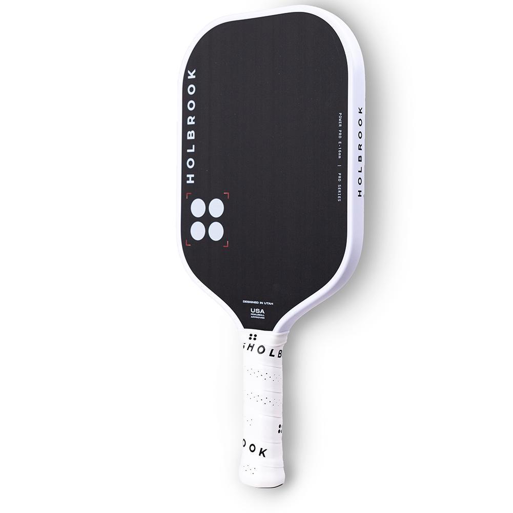 The Holbrook Power Pro E 16mm Pickleball Paddle features a more elongated paddle shape to harness maximum power. It's been engineered with revolutionary technologies to amplify the power, spin, and control of every shot. A T700 carbon fiber hitting surface and Unibody Edgecraft Foam edge guard work together to offer consistent kinetic reaction. The specialized comfort grip uses non-slip technology to secure the paddle in your hands and the handle length enables power 2-handed backhands when they count.