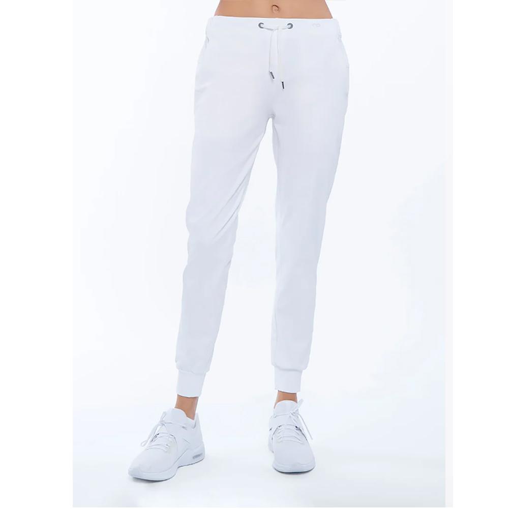 The InPhorm Women's Alexa Tennis Jogger offers both style and performance for your athletic wardrobe. These joggers feature an external drawcord for a customizable fit and two front pockets for convenient storage. With a snug fit at the cuffs, they ensure comfort and ease of movement. Made with moisture-wicking fabric and providing UPF 50+ protection, these joggers keep you dry and protected from the sun, making them perfect for your on-court activities.
